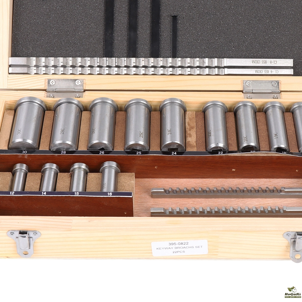 22pcs Metric System Keyway Broach Set, Bushing Shim Set 12-30 HSS Keyway Tool knife for CNC Machine