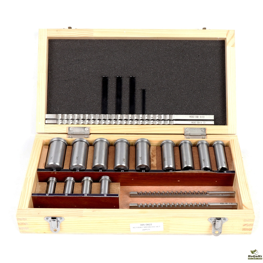 22pc keyway broach kit ferrule bushing gasket set, metric size, high speed steel material, metal processing tool.