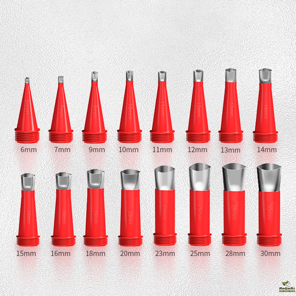 Feature: 1. There are 16 different sizes of caulking nozzles, with 6 bases, from small to large, to meet your needs. 2. The caulking tool is made of strong, reusable, durable, rust-proof, wear-resistant stainless steel. Easy to clean and use. 3. The caulk nozzle dresser can be easily taped to the caulk gun. They are also light and easy to store and carry. 4. The sealant caulking nozzle applicator is ideal for caulking in sinks, doors and windows, bathrooms, kitchens, and more. Specification: Material: stainless steel + plastic Size: 6mm/0.24in, 7mm/0.28in, 9mm/0.35in, 10mm/0.39in, 11mm/0.43in, 12mm/0.47in, 13mm/0.51in, 14mm/0.55in, 15mm/0.59in, 16mm/0.63in, 18mm/0.71in, 20mm/0.79in, 23mm/0.91in, 25mm/0.98in, 28mm/1.1in, 30mm/1.18in, height about 100mm/3.94in Packing list: 16 nozzles + 6 yellow bases Uses: home decoration, wall base treatment, beauty sewing tools Note: Due to the different monitor and light effect, the actual color of the item might be slightly different from the color showed on the pictures. Thank you! Please allow 1-2mm measuring deviation due to manual measurement.