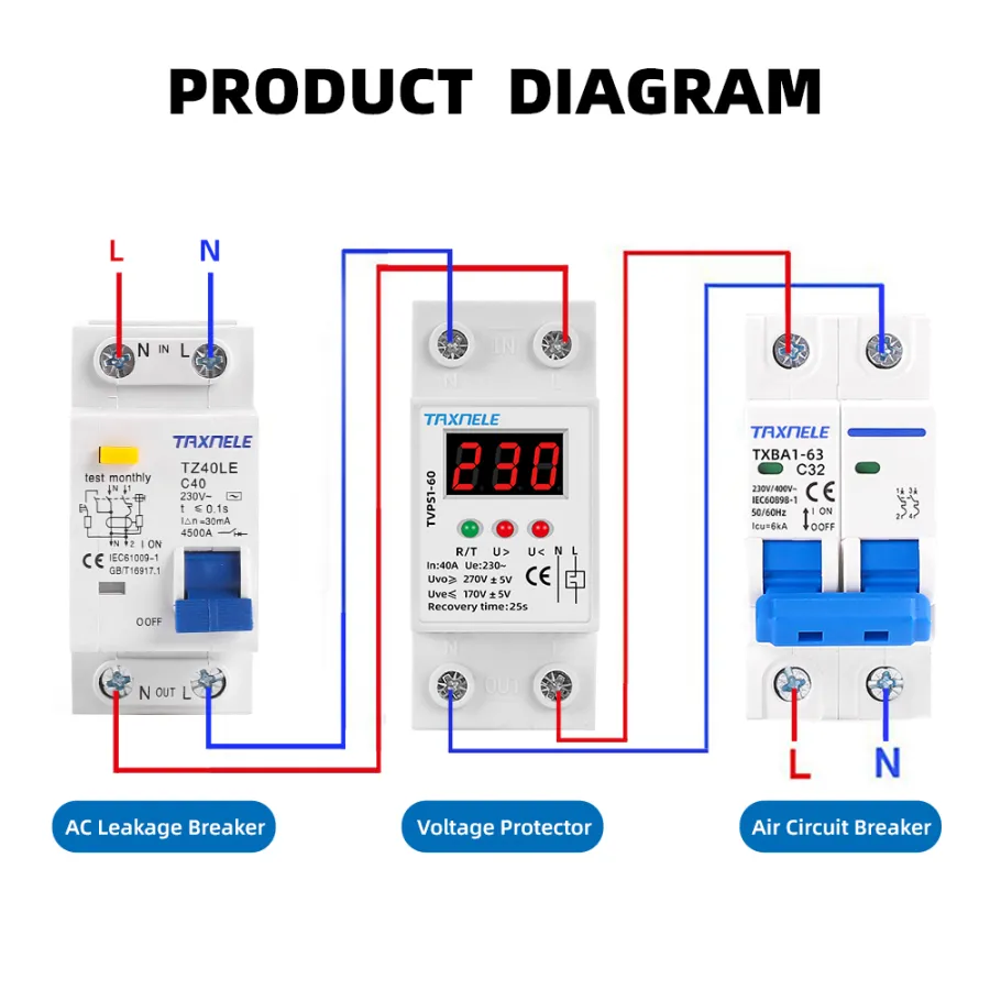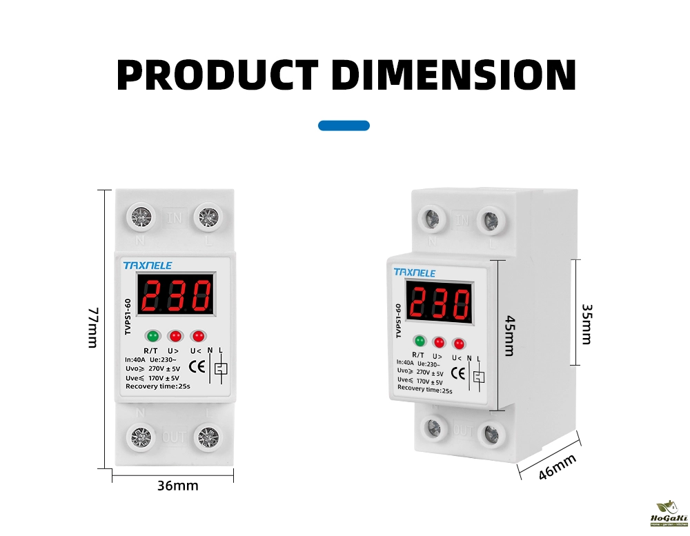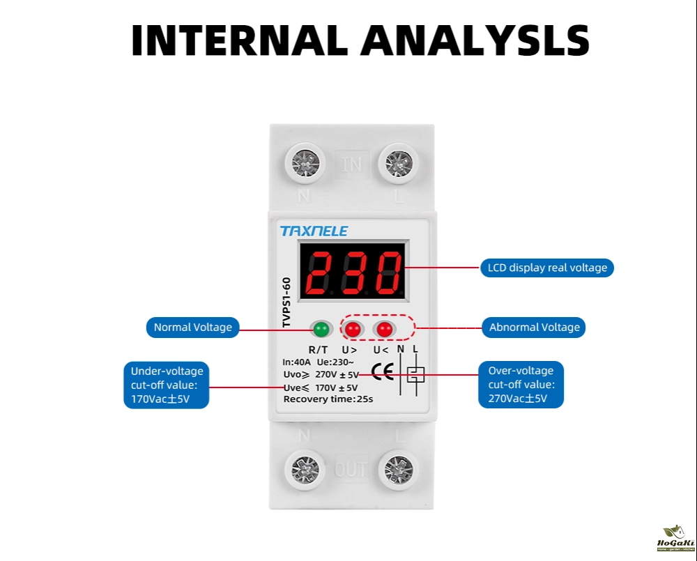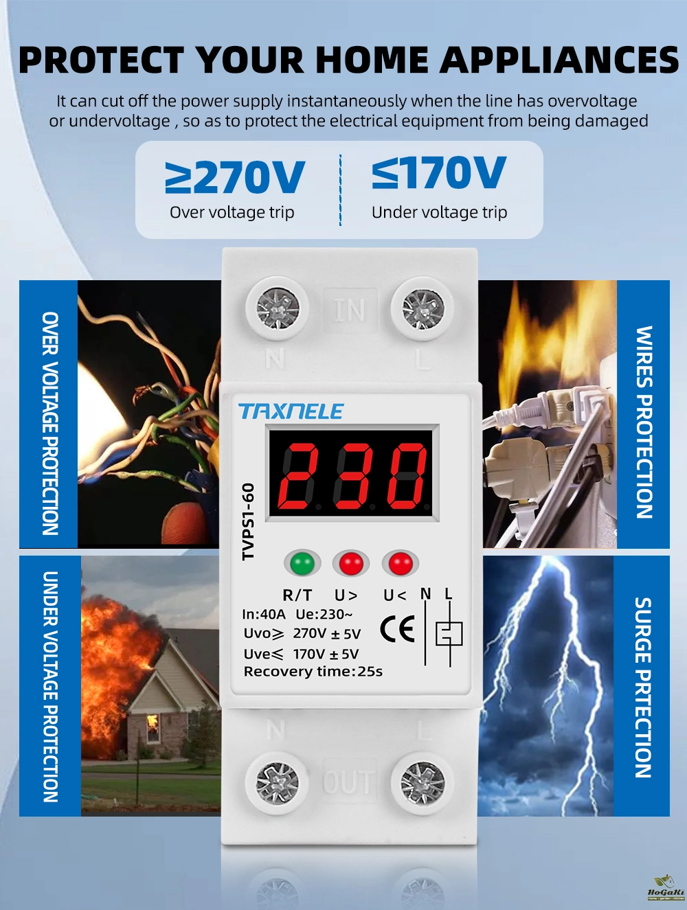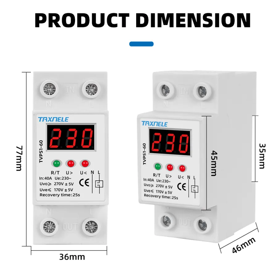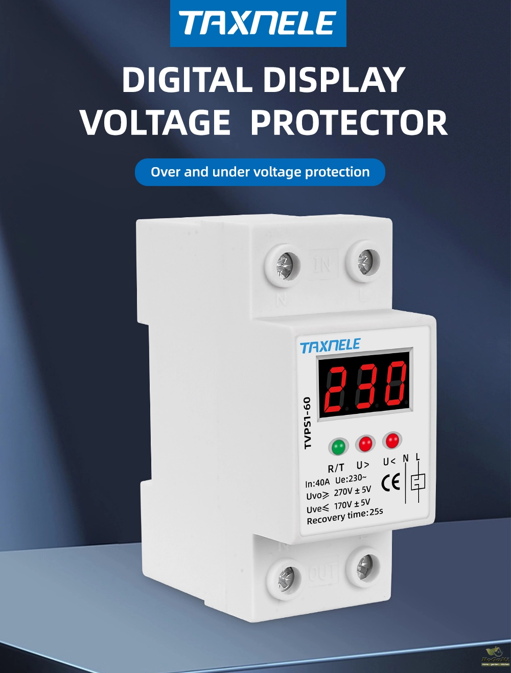 The automatic recovery over voltage and under voltage protective device complies with modular design standards. the circuit boards of products adopt good quality electronic components with reliable performance. when the power situation is unstable. It's protection function will be automatically activated. once the voltage exceeds the limited range of products, it will automatically cut off so as to protect the safely of electrical equipment and persons. The device will re-supply in 1 minute, when the power returns to normal.