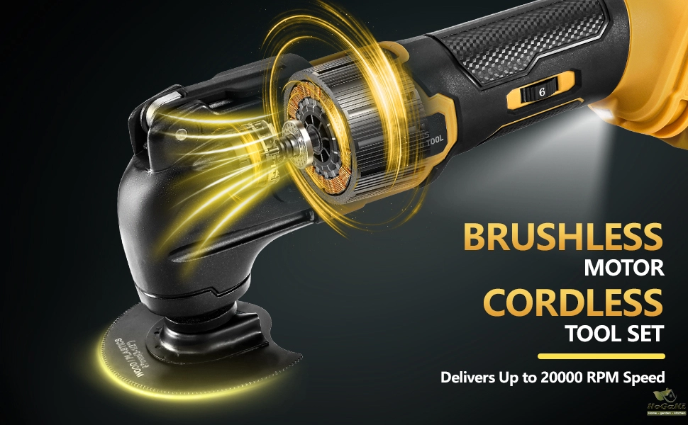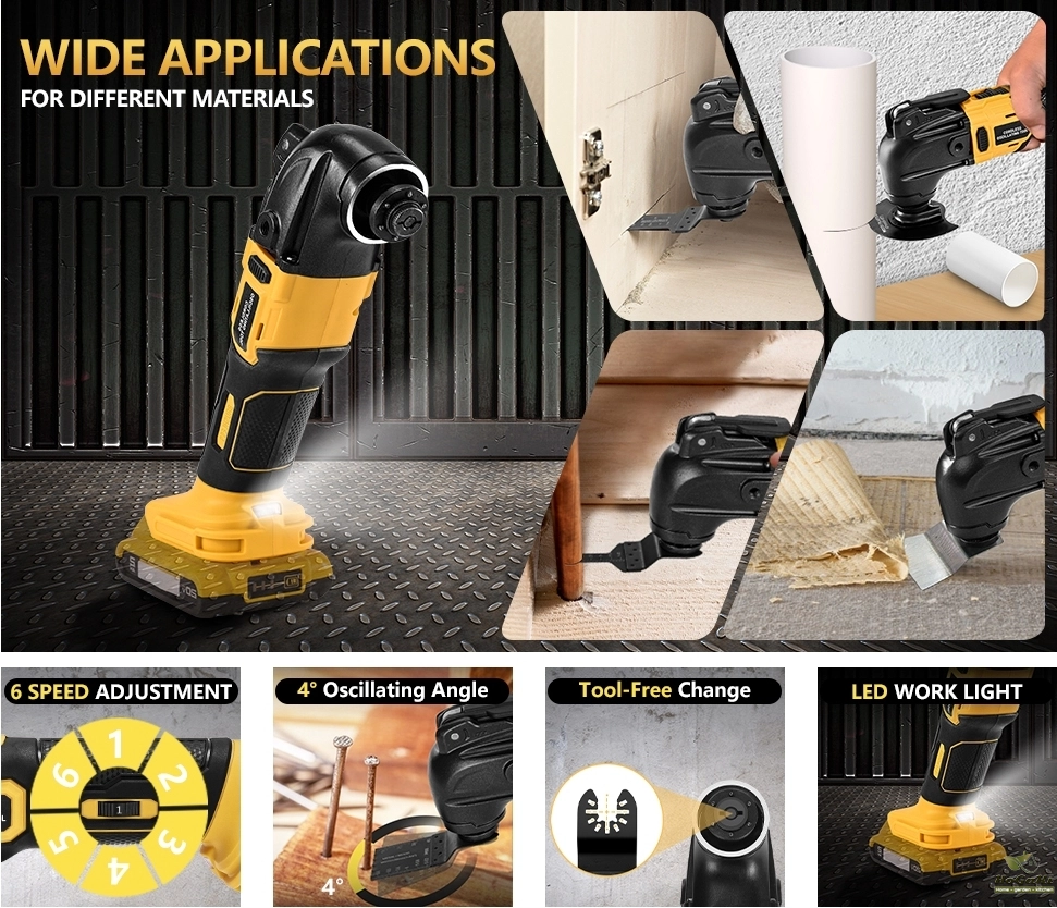 【6 Variable Speed Oscillating Multitool】This oscillating multi-tool for Dewalt has 6 variable speed settings ranging from 8500-20000 OPM. Newly upgraded powerful brushless motor, long life, energy saving and stable.