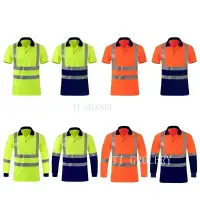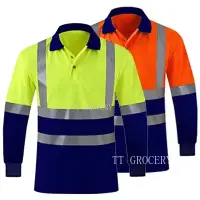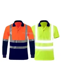 Summer Quick Dry Shirt Hi Vis Workwear Contrast Color Safety Long Sleeve Polo Shirt Reflective Work Tops For Working