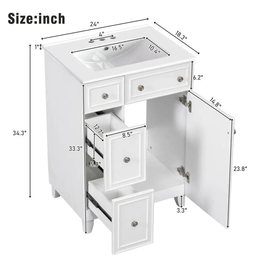 | Vanity: | 23.46"W*17.9"D*33.3"H, 54.12 lbs |
