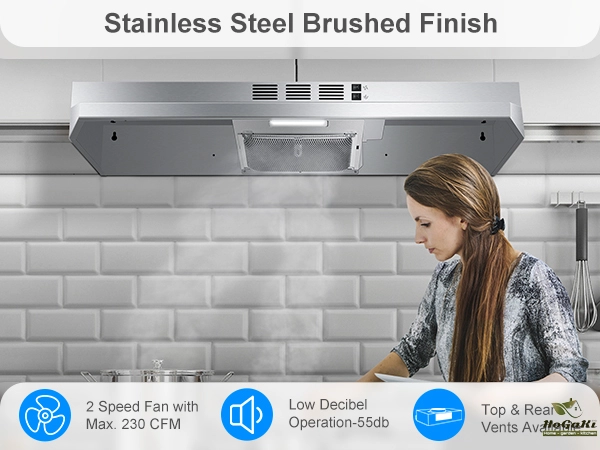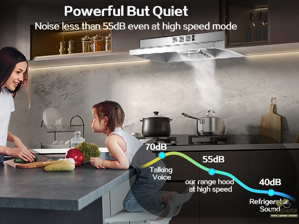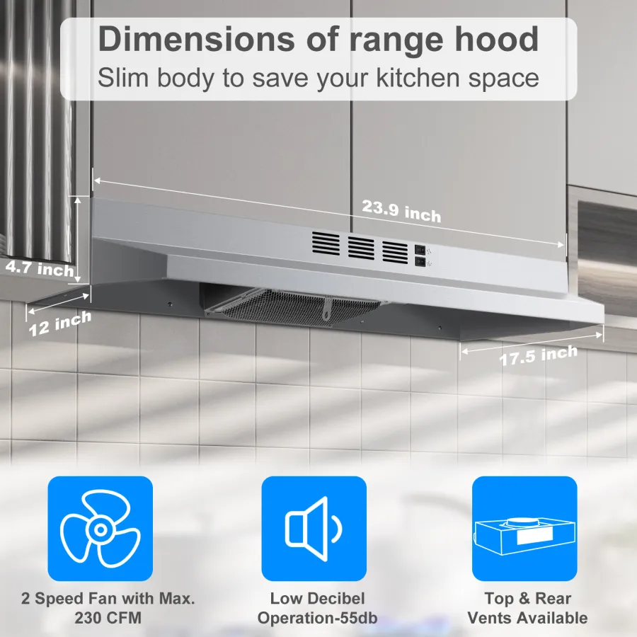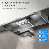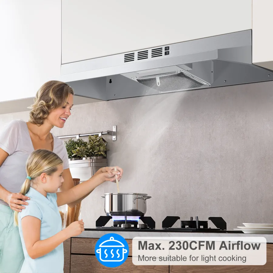 The strong suction of 230CFM airflow removes grease and odors effectively for a clean and healthy kitchen, making cooking easier.