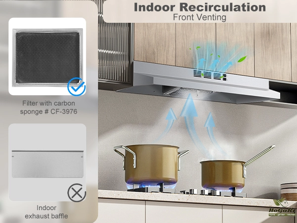 Front Venting,Filter with carbon sponge # CF-3976,indoor exhaust baffle is not required.