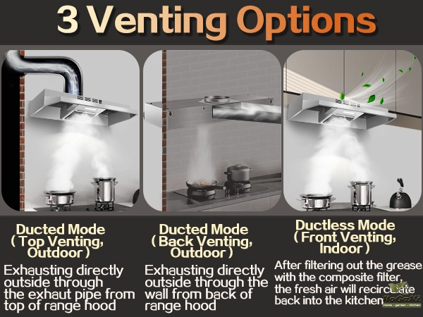 Other range hoods generally offer single suction mode, SNDOAS kitchen hood provides 2 venting modes: ducted and ductless. You can choose the mode according to your needs.