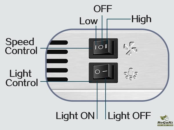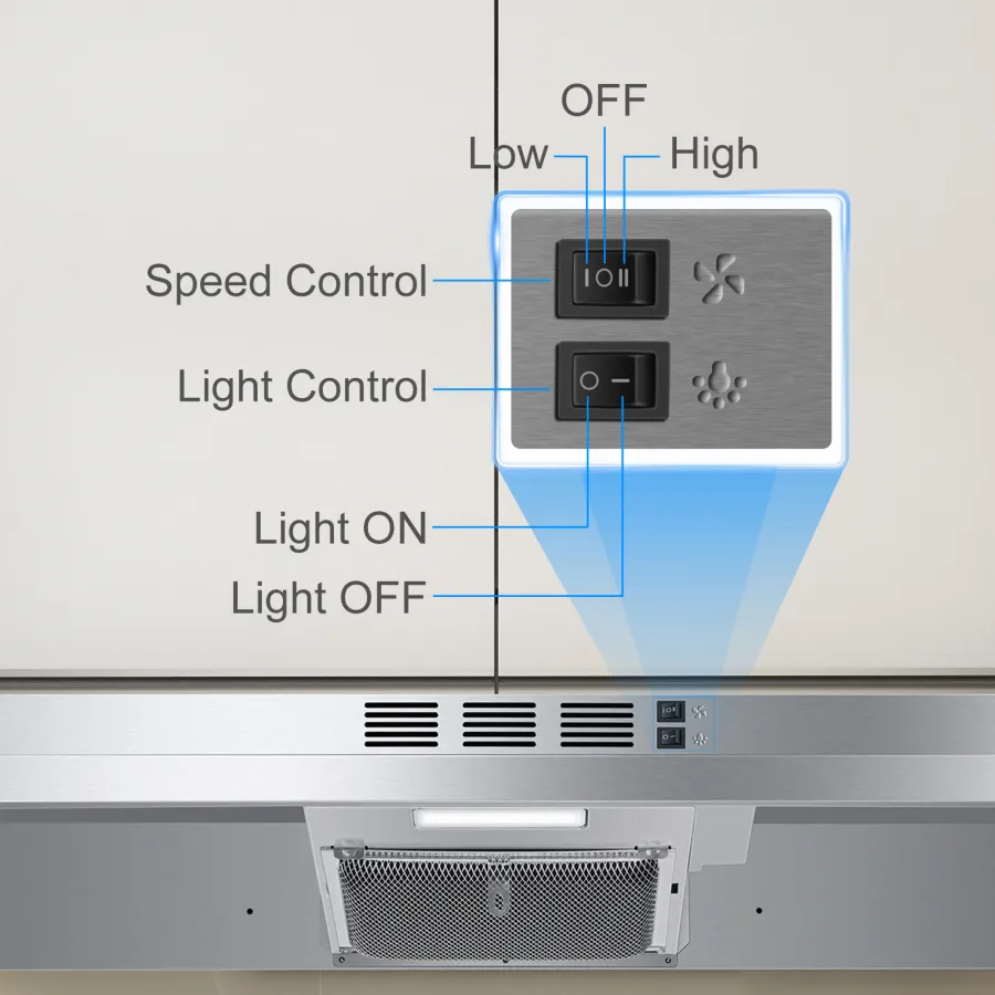 This range hood is equipped with a rocker switch, which is easy to operate and responsive.