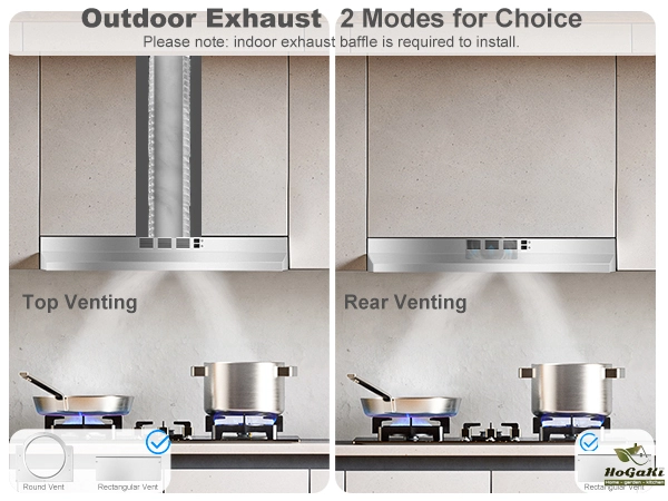 Top Venting(Round &Rectangular Vent)&Rear Venting(Rectangular Vent), indoor exhaust baffle is required to install.