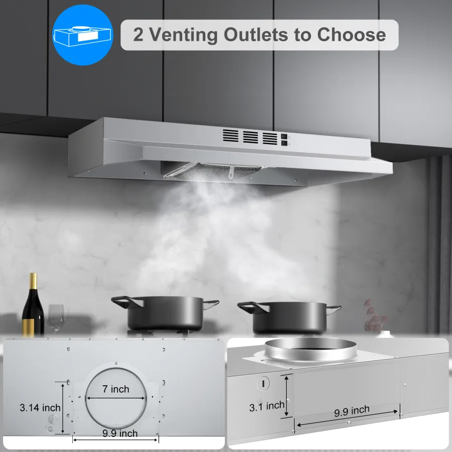 The smooth stainless steel surface is easy to clean. Just wipe gently, and you can remove the stains on the vent hood and enjoy the cooking time.