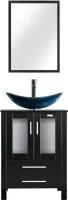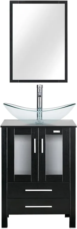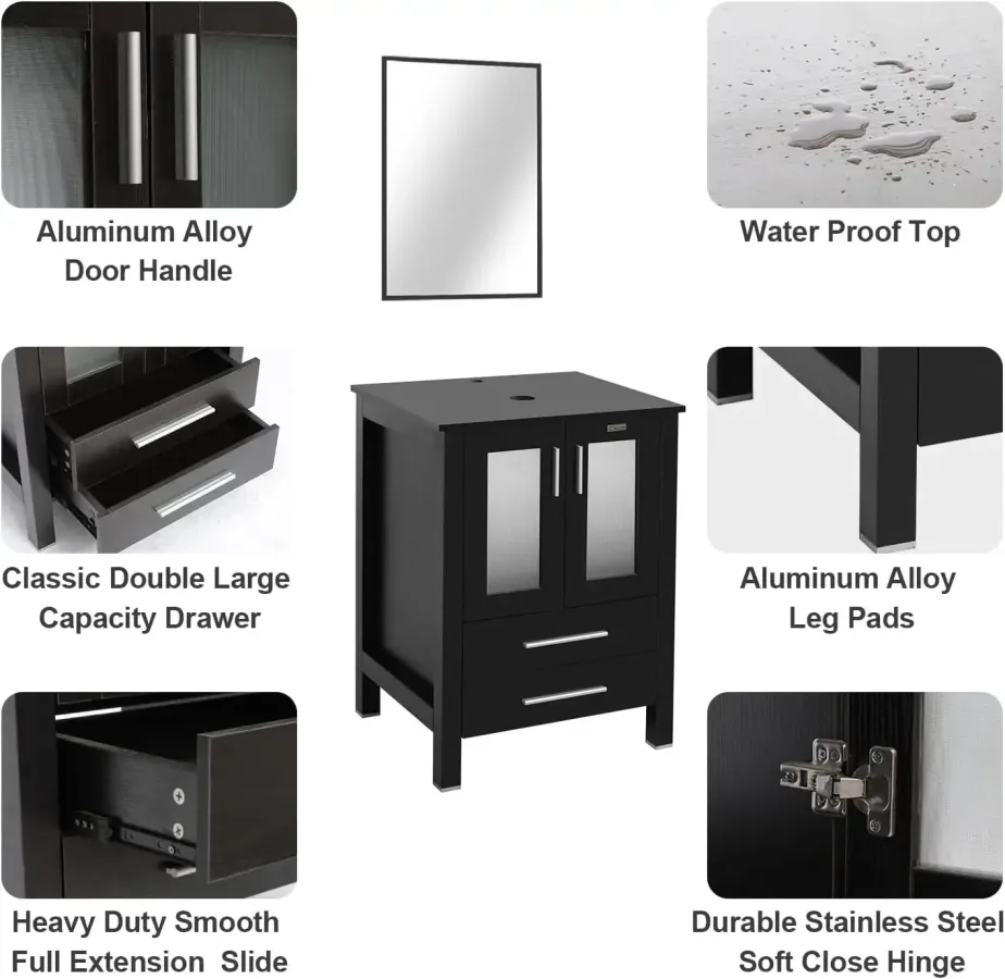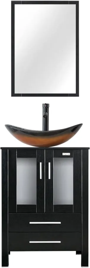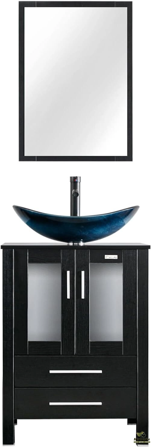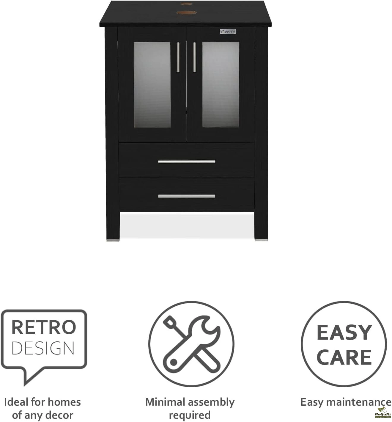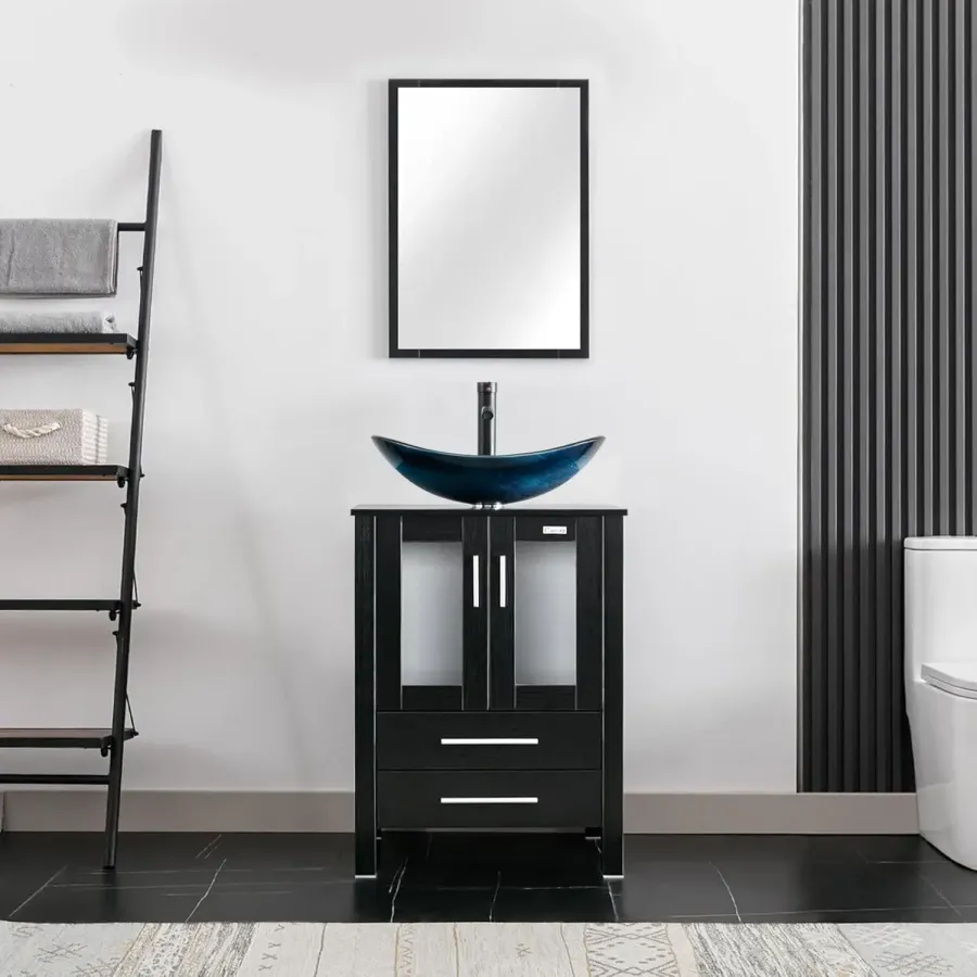 25 Inch Bathroom Vanity Cabinet with Vessel Sink and Stainless Faucet Two Door Storage Open Shelf Backsplash Pop Up Drain