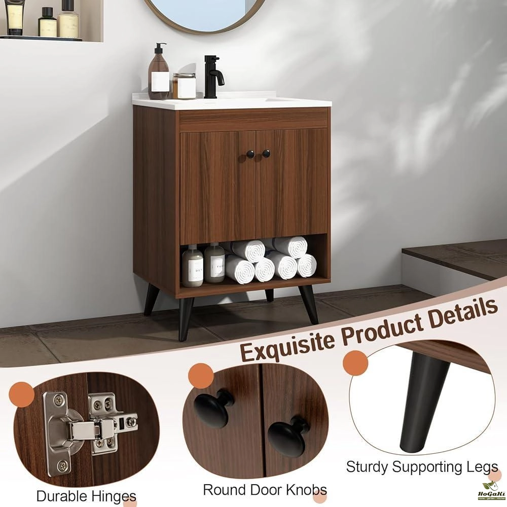24 Inch Bathroom Vanity with Sink Combo,Floating Bathroom Vanity with 2 Fluted Drawer,Metal Handles, Wall Mount Bathroom Cabinet