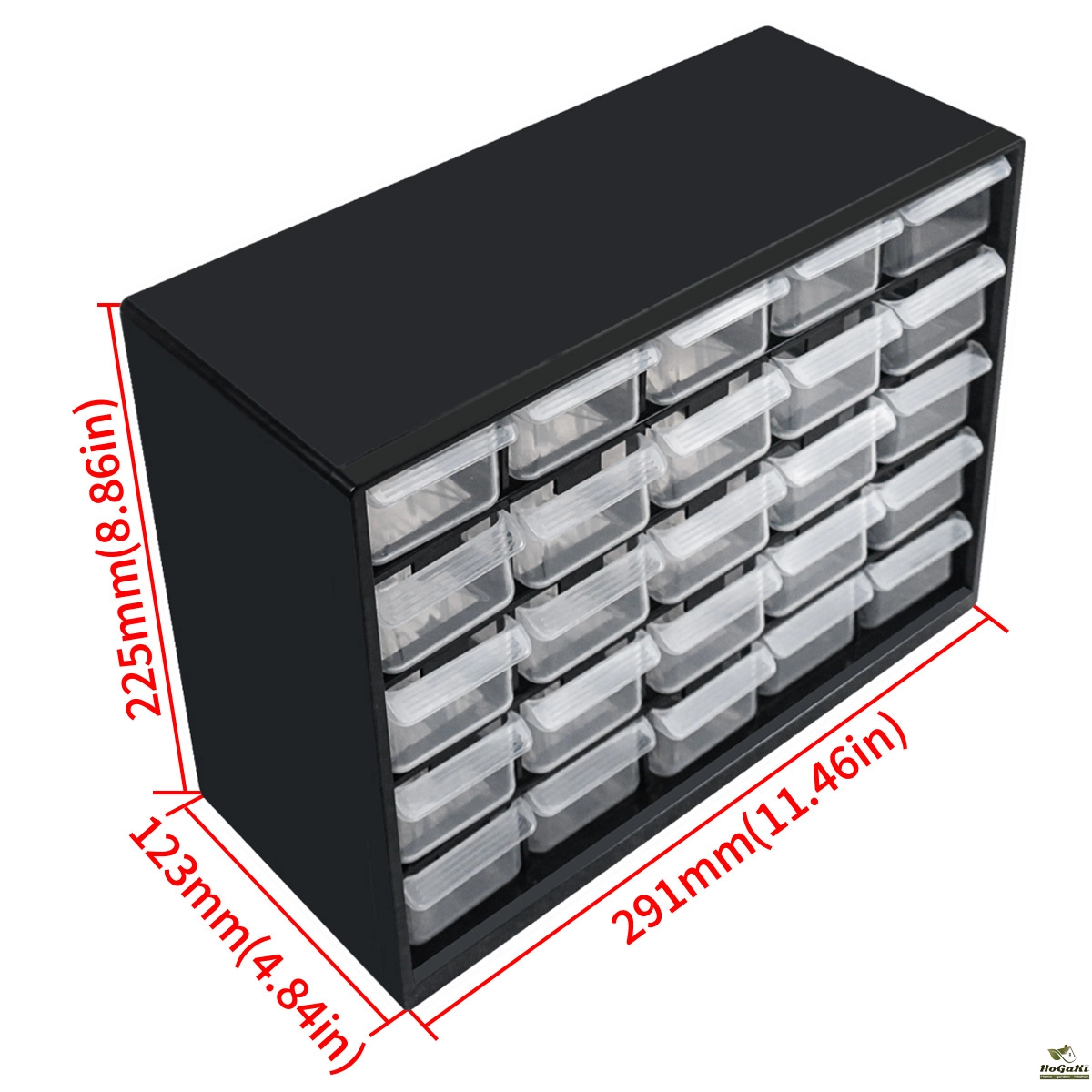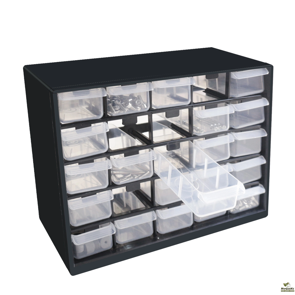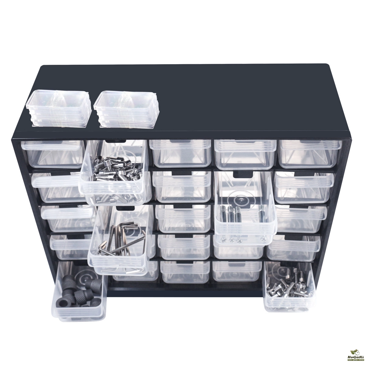 25 drawers provide sufficient space for nuts, bolts, screws, fixing devices, components, etc.