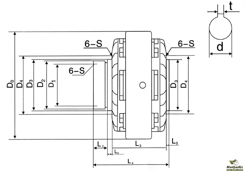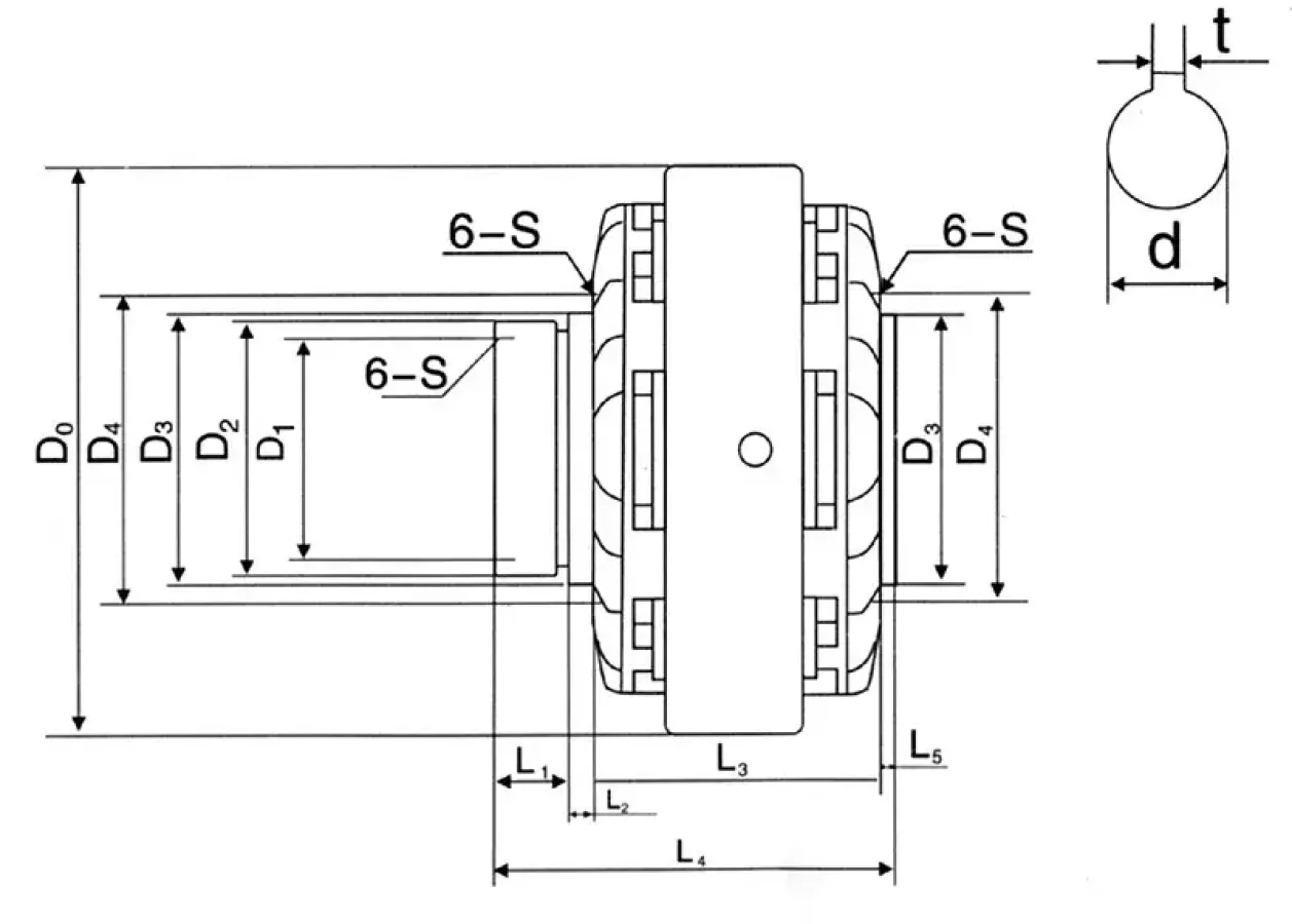 torque | Voltage | Rotating speed | Maximum current A | D 0 | D 1 | D 2 XL 1 | D 3 XL 2 | D 4 | L 3 | L 4 | L 5 | d | t | 6-S 2 | 6-S 1 | ||