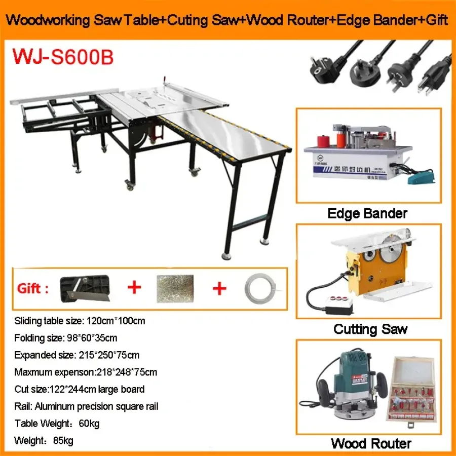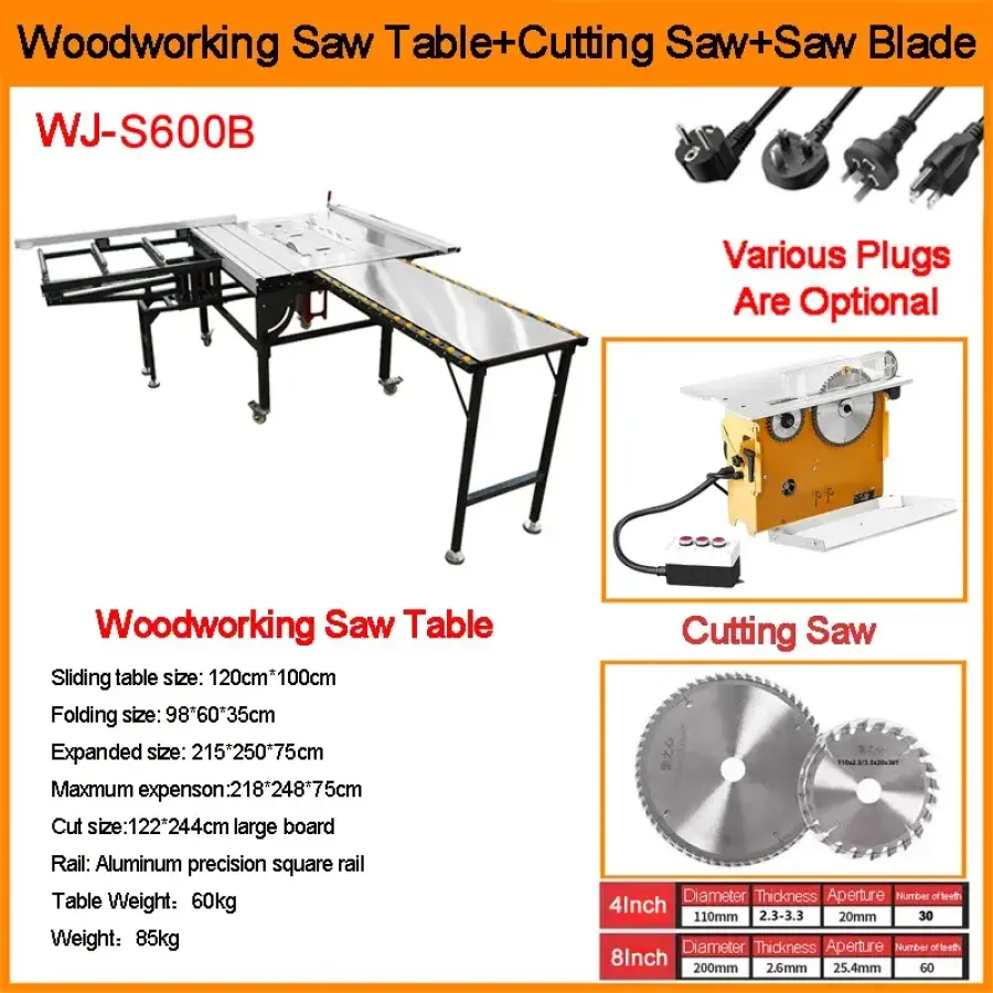2600W Table Saw Multifunctional Woodworking Dust-free Cutting Saw Precision Guide Folding Electric Panel Saw Woodworking Set
