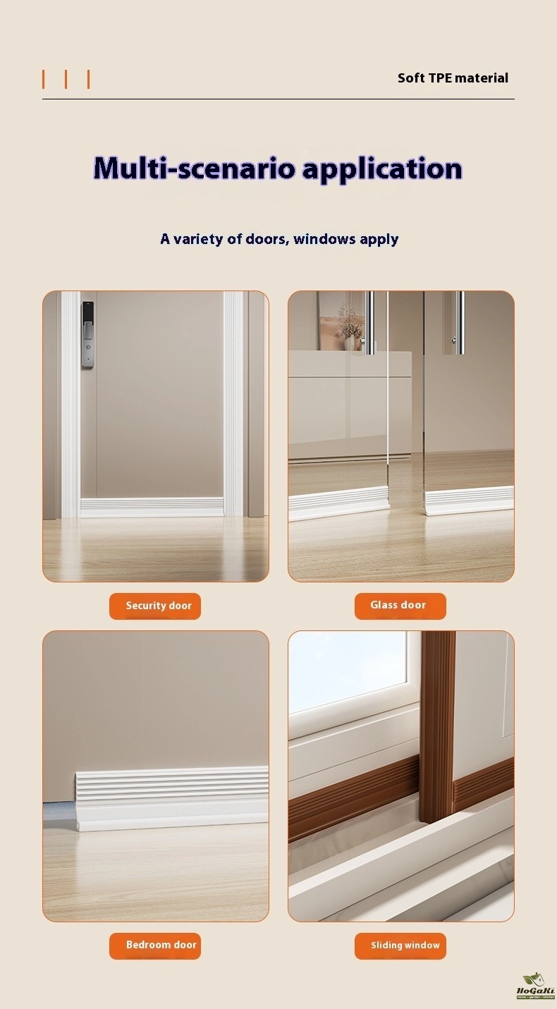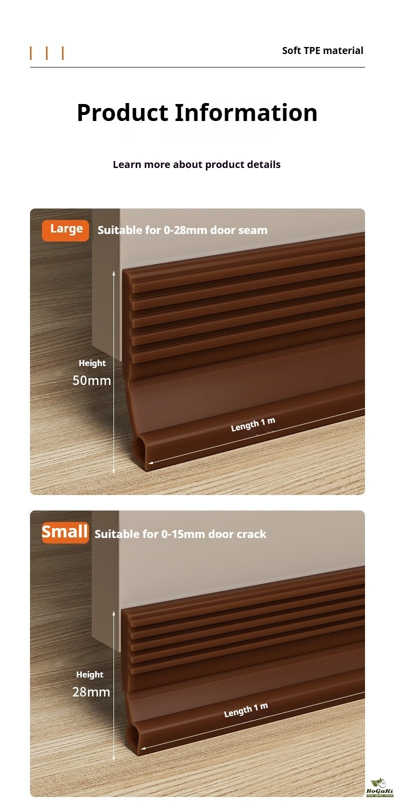 28/50mm Height Door Seal Strip Flexible Soft TPE Under Door Weatherstrip 1M Self-Adhesive Dustproof Windproof Stripping