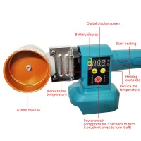 This water pipes melting device is high power design, quick heating, highly efficient, with uniform and stable heat conduction. Intelligent temperature control chip, uniformly heating, support for precise temperature adjustment of 350-450℃. Equipped with 3 different specifications of ironing heads, 20mm, 25mm and 32mm, it is easy to change according to the different usage. Powered by lithium battery (not included), wireless and convenient, will not be limited by the power supplies, convenient for used to hot melting water pipes when without power supplies.
