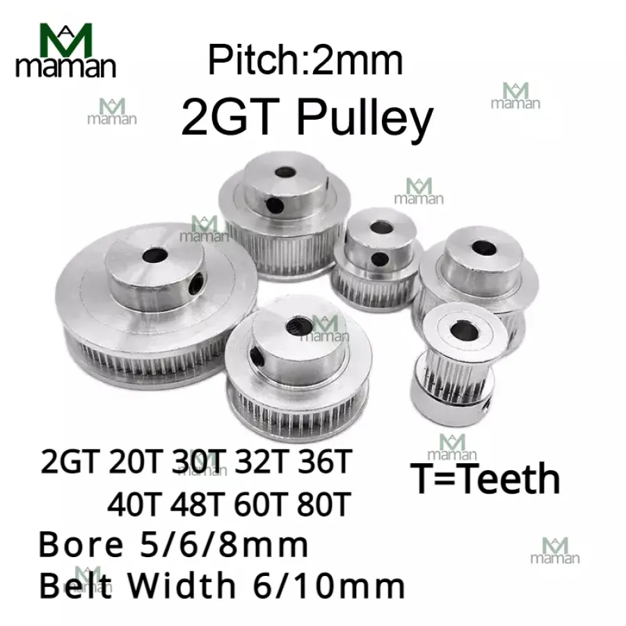 2GT Synchronous wheel 2M 20T 30T 32T 36T 40T 48T 60T 80 Toothed Belt Width 6/10mm Aperture 5/6/8mm 3D Printer GT2 Belt Pulley