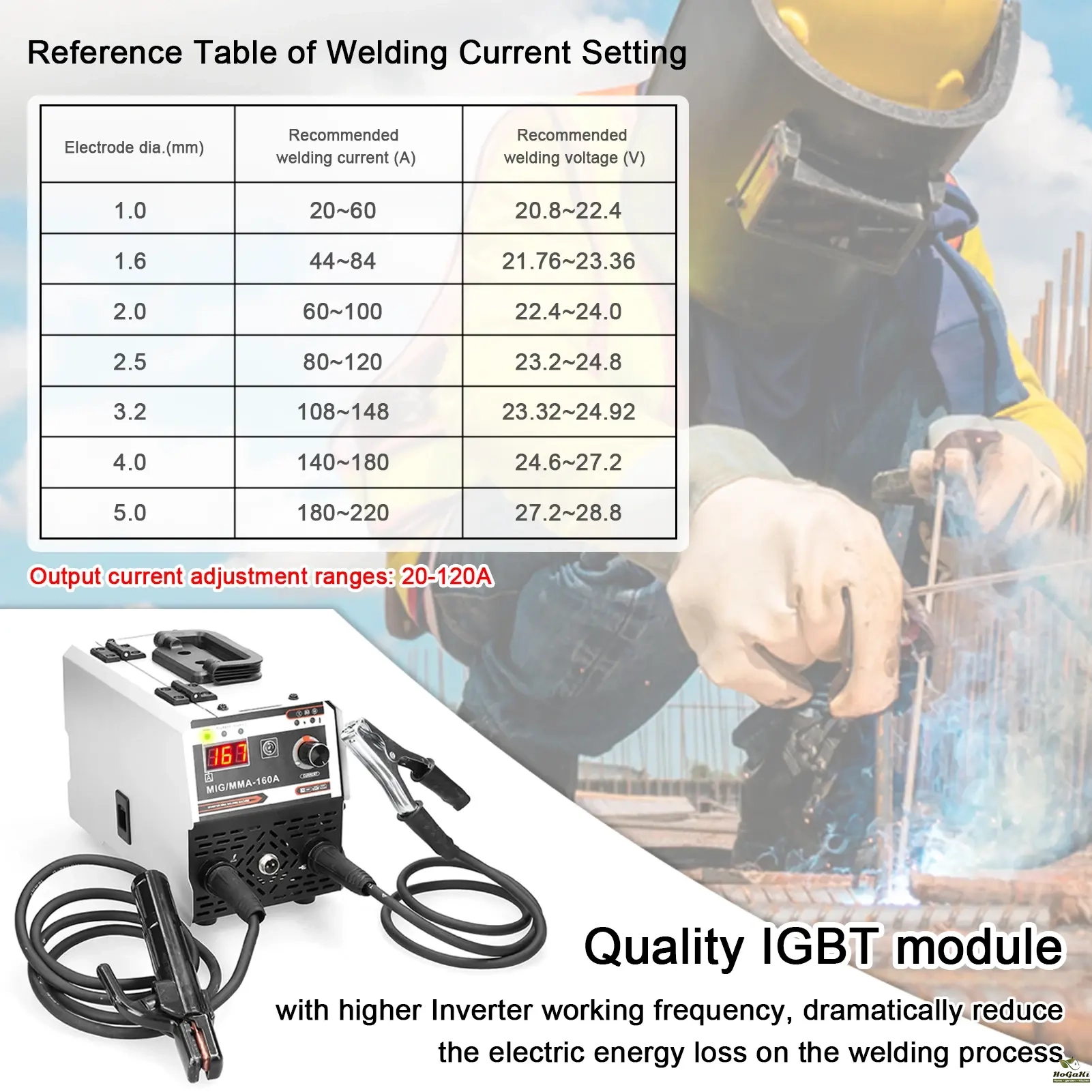 Quality IGBT module, with higher Inverter working frequency, dramatically reduce the electric energy loss on the welding process.