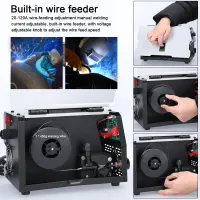 20-120A wire-feeding adjustment manual welding current adjustable, built-in wire feeder, with voltage adjustable knob to adjust the wire feed speed.