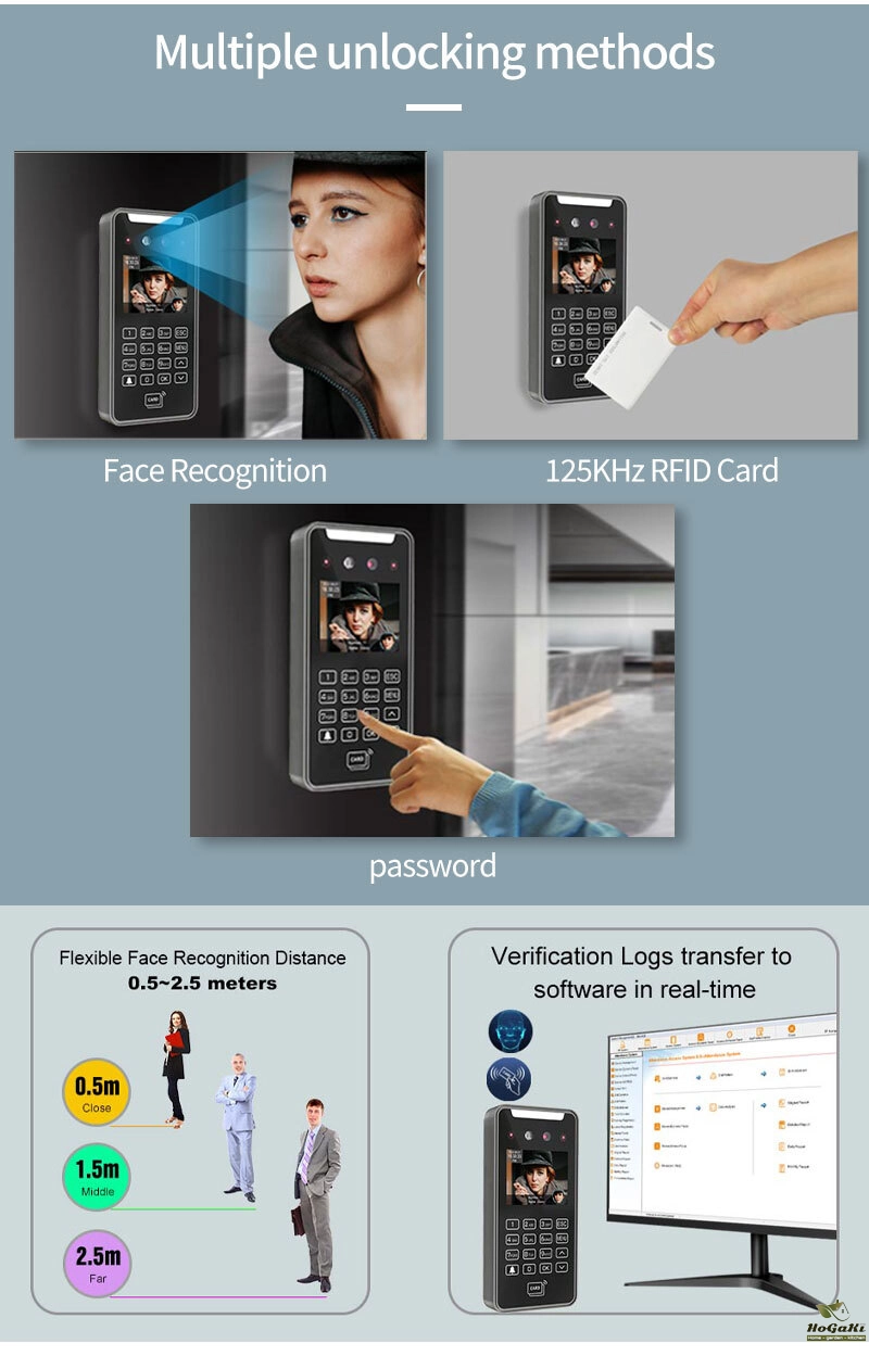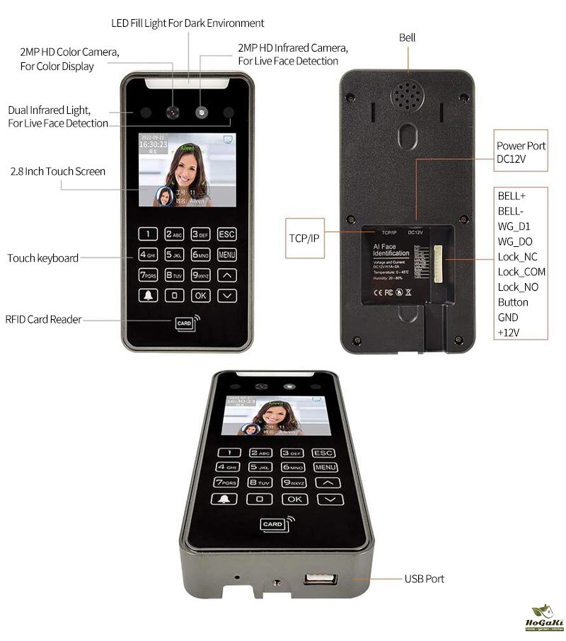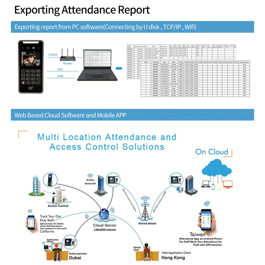 2MP HD 2.8inch 5000User Biometric Face Recognition Access Control System TCP IP Wifi Cloud Software SDK Staff Attendance Reader