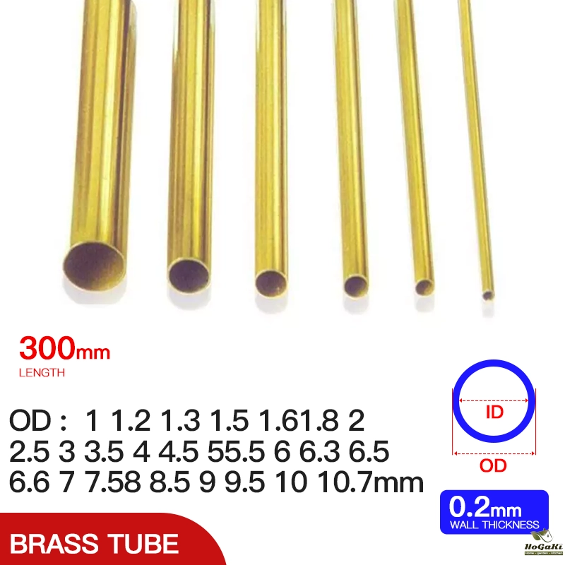 Brass Tube, wall thickness 0.2mm;Length 300mm(11.8 inch) ;outer diameter( OD) varies from1mm to 11 mm