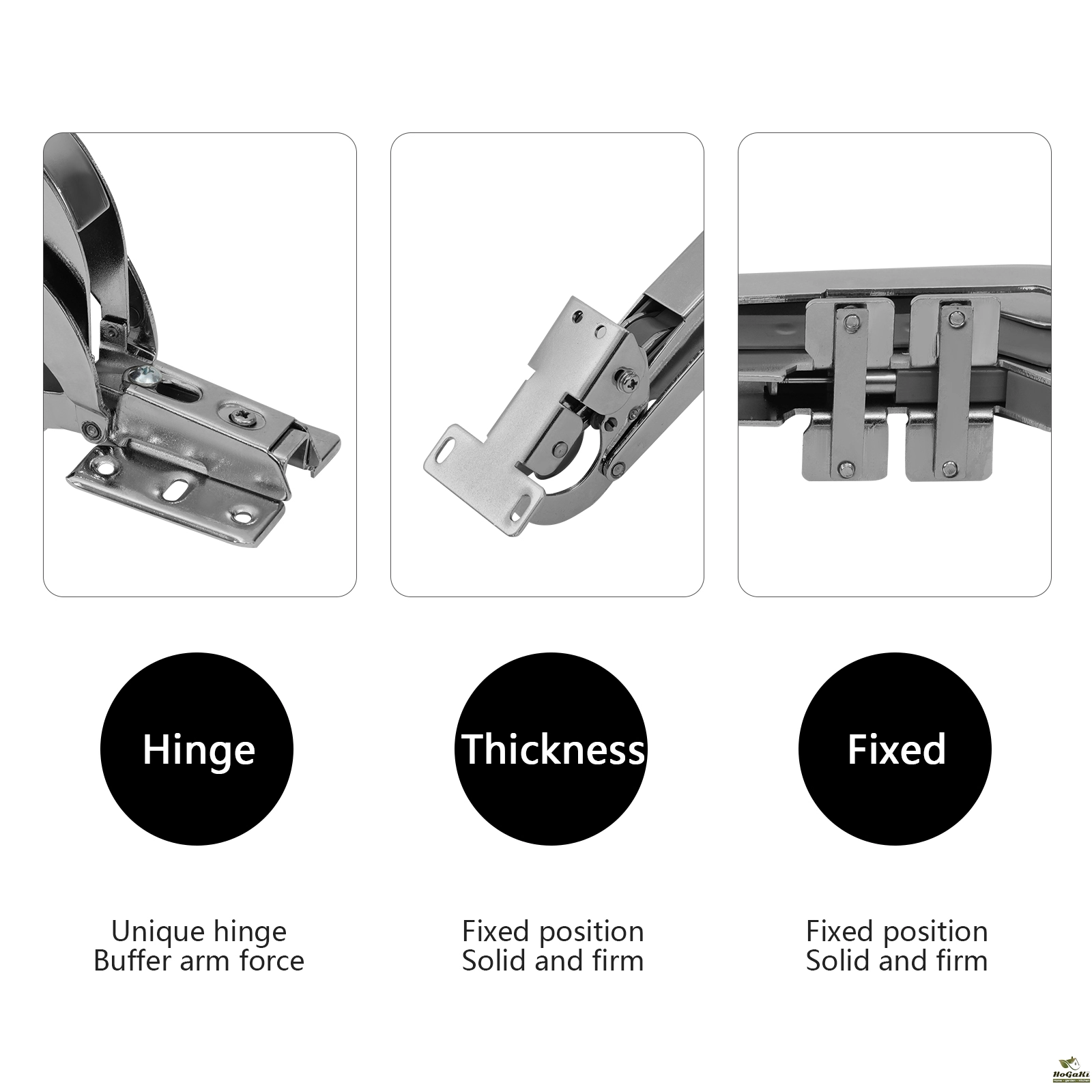 This cabinet door hinge is made of high-quality material, making it sturdy and durable. Its strong load capacity makes it suitable for most doors. A damping buffer makes it easier to close the door. It can open 180° parallel after installation, greatly enhancing the overall aesthetics and unity of your home environment. It allows you to open and close cabinet doors easily, making it an assistant in your life.