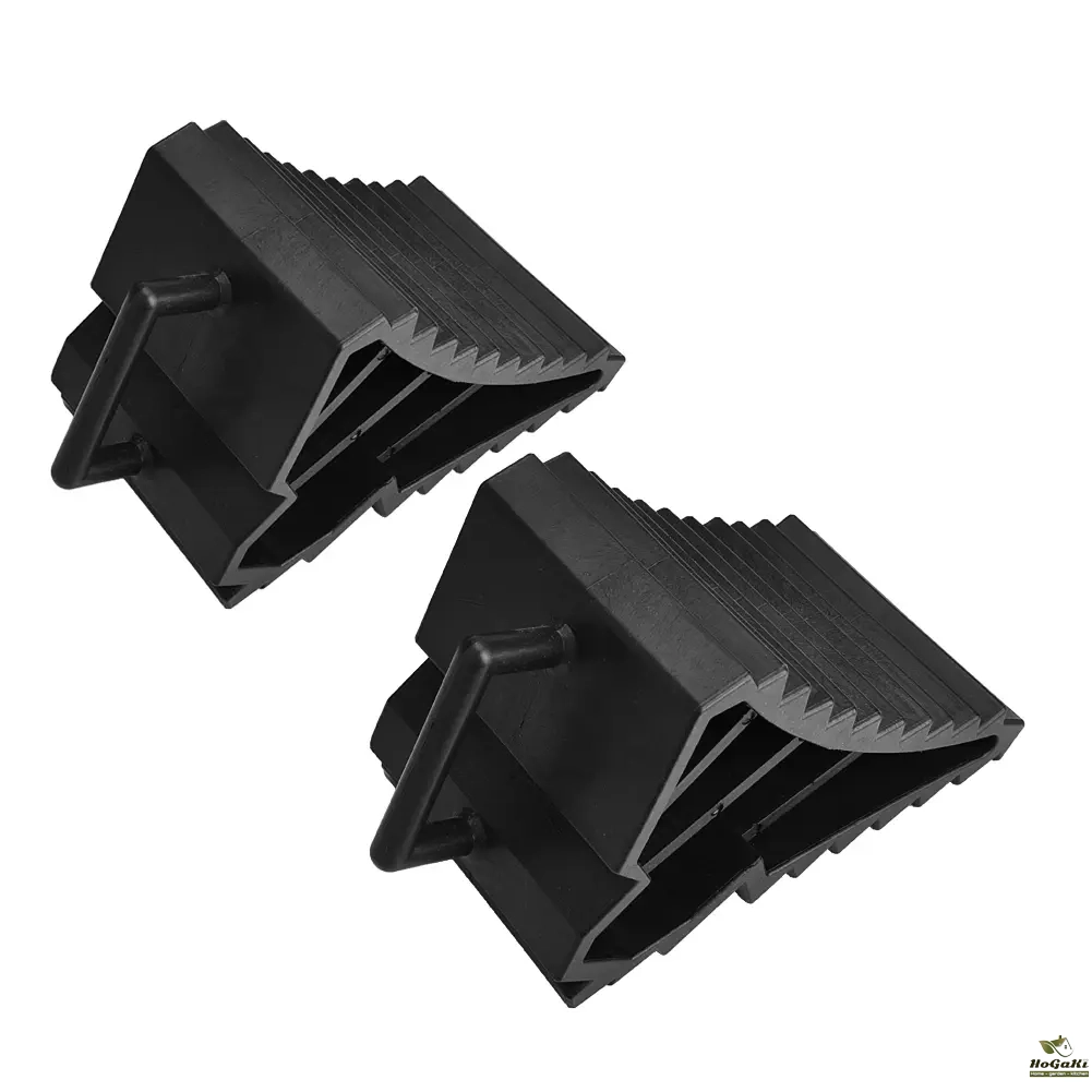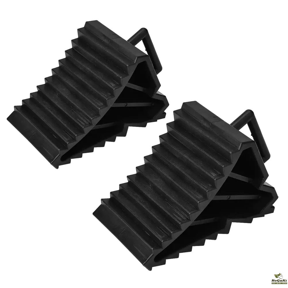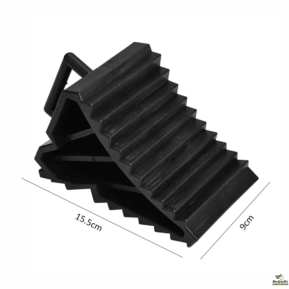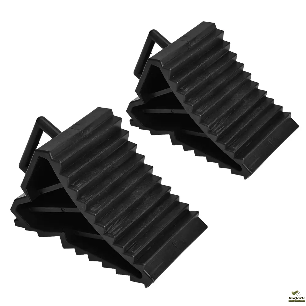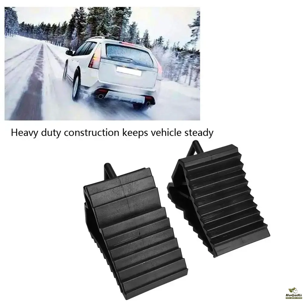 2Pcs Car Wheel Chocks with Handles Heavy Duty Wheel Blocks Anti-slip Plastic Base Car Tyre Slip Stopper Block for Car Trailer RV Feature:1.Durable Plastic Design: Our car wheel chocks are constructed from high-quality plastic that resists cracking, ensuring long-term durability. Designed to keep your vehicle's wheels in place, these chocks prevent unwanted movement, providing safety and peace of mind.2.Compact and Convenient: The tire anti-slip device boasts a compact size that can be easily stored in your vehicle without taking up excess space. Its tailored design allows for quick deployment, ensuring that your car remains stable whenever you need it.3.Sturdy for Stability: These heavy duty wheel blocks feature a robust structure that secures vehicles firmly in place. Whether you're working on your car or loading cargo, you can count on these wheel chocks to provide a reliable and sturdy support.4.Lightweight and Easy to Handle: Our plastic wheel chocks blocks are not only durable but also lightweight, making them easy to pick up from the ground. Despite their light weight, they offer the strength needed to prevent tire rolling effectively.5.Versatile Use: The non slip wheel chocks stoppers are perfect for a wide range of applications, from securing trailers and trucks to other vehicle wheels. They are particularly useful for parking, carrying out vehicle repairs, or when changing tires, making them an essential tool for any vehicle owner. Specification: Material: ABS plastic Colour: Black Quantity: 2 Fitment: universal Size:15.5x9x9.8cm /6.1x3.54x3.86inch Weight: 816g Note: There may be slight size deviations due to manual measurement, different measuring methods and tools. The picture may not reflect the actual color of the item because of different photographing light, angle and display monitor. 2pcs x Car Wheel Chocks                         ![]()