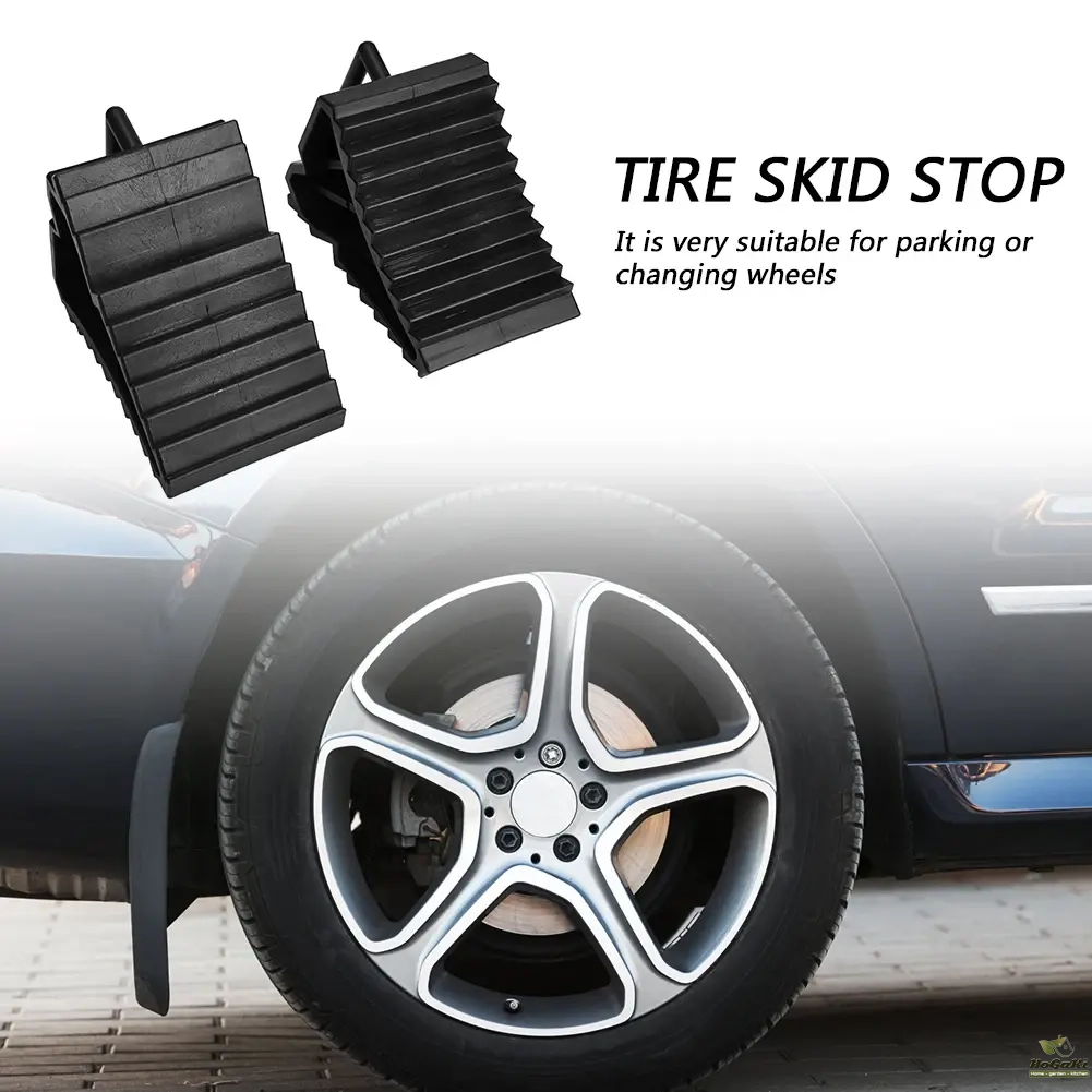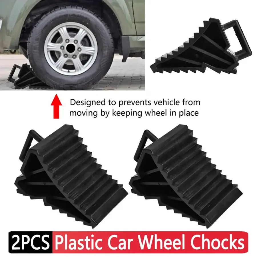 2Pcs Car Wheel Chocks with Handles Heavy Duty Wheel Blocks Anti-slip Plastic Base Car Tyre Slip Stopper Block for Car Trailer RV Feature:1.Durable Plastic Design: Our car wheel chocks are constructed from high-quality plastic that resists cracking, ensuring long-term durability. Designed to keep your vehicle's wheels in place, these chocks prevent unwanted movement, providing safety and peace of mind.2.Compact and Convenient: The tire anti-slip device boasts a compact size that can be easily stored in your vehicle without taking up excess space. Its tailored design allows for quick deployment, ensuring that your car remains stable whenever you need it.3.Sturdy for Stability: These heavy duty wheel blocks feature a robust structure that secures vehicles firmly in place. Whether you're working on your car or loading cargo, you can count on these wheel chocks to provide a reliable and sturdy support.4.Lightweight and Easy to Handle: Our plastic wheel chocks blocks are not only durable but also lightweight, making them easy to pick up from the ground. Despite their light weight, they offer the strength needed to prevent tire rolling effectively.5.Versatile Use: The non slip wheel chocks stoppers are perfect for a wide range of applications, from securing trailers and trucks to other vehicle wheels. They are particularly useful for parking, carrying out vehicle repairs, or when changing tires, making them an essential tool for any vehicle owner. Specification: Material: ABS plastic Colour: Black Quantity: 2 Fitment: universal Size:15.5x9x9.8cm /6.1x3.54x3.86inch Weight: 816g Note: There may be slight size deviations due to manual measurement, different measuring methods and tools. The picture may not reflect the actual color of the item because of different photographing light, angle and display monitor. 2pcs x Car Wheel Chocks                         ![]()