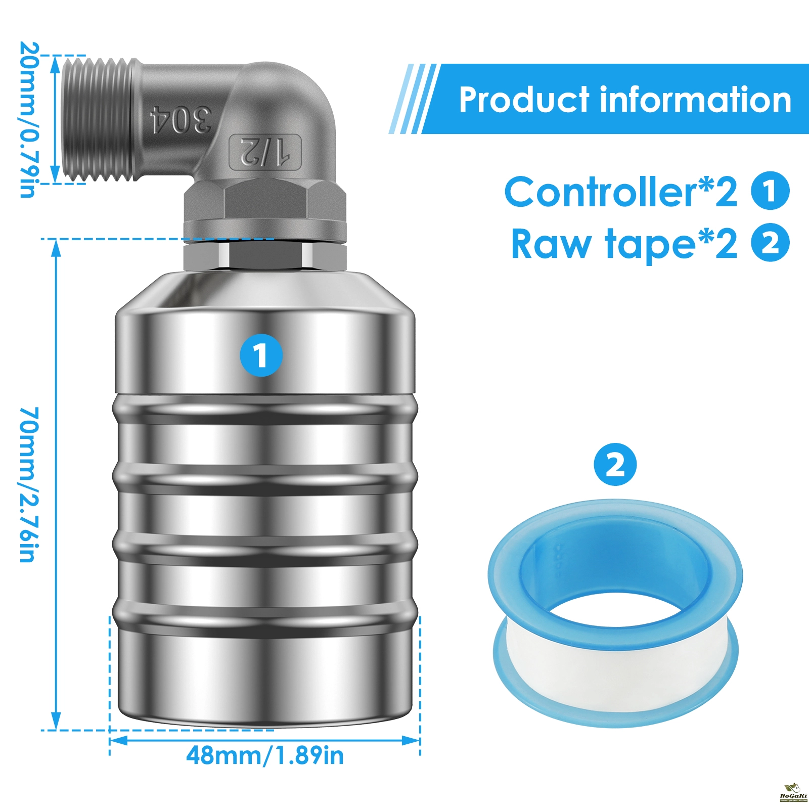 [Package Content] The package includes 2pcs water level control float valves and 2pcs tapes, sufficient to meet your daily needs. The water controller is suitable for water pressure of 10psi to 150psi, and 0℃ to 100℃ working temperature.