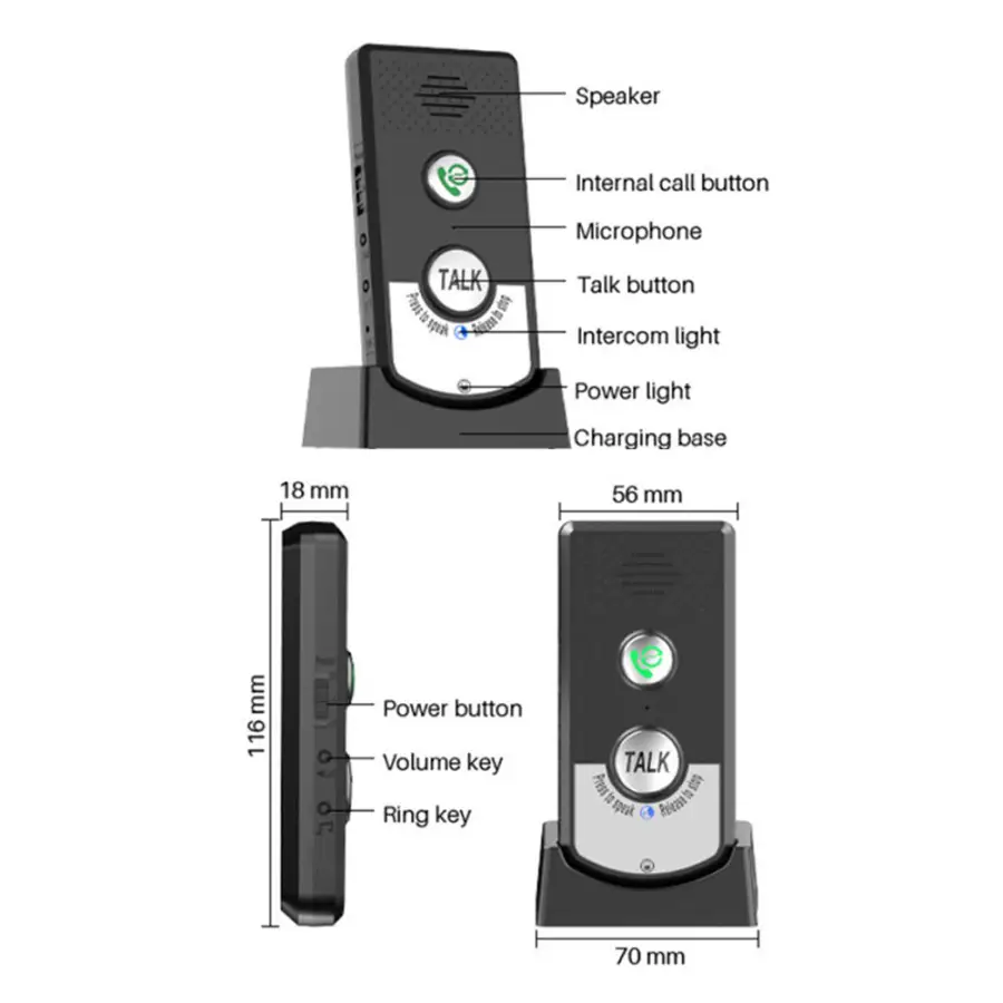 【High-Capacity Battery】: Powered by a 1800mAh polymer lithium battery, our intercom system can last for about a week with normal use (5 calls per day, 30 seconds per call). It also features a standby time of 3-5 days, making it a reliable communication tool for your home or office.