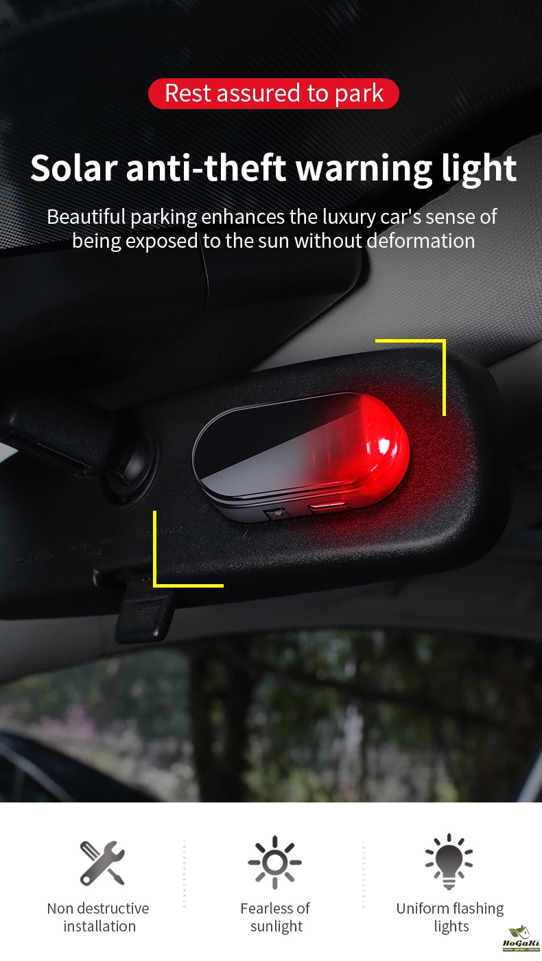Solar Powered Car Fake Security Light Super Bright Simulated Dummy Alarm Wireless Warning Anti-Theft Caution Lamp Flashing