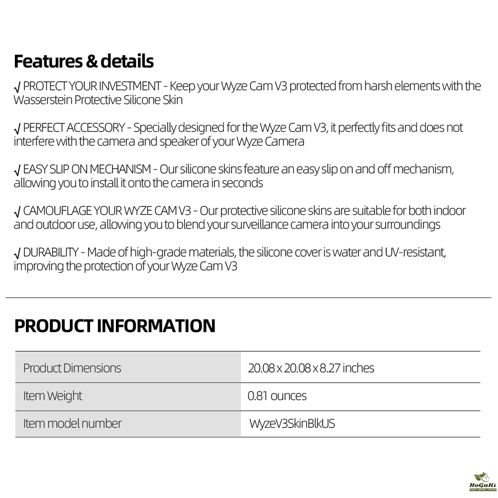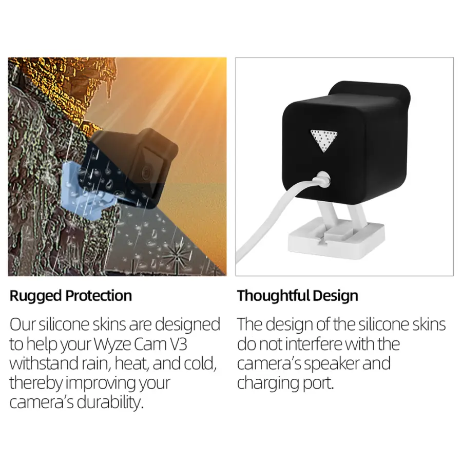 Feature: 1. Good compatibility: This protective sleeve is specially designed for Wyze Cam V3. Practical accessories for wireless home security camera systems. Please note that this case is not compatible with other models. 2. Comprehensive protection: This protective cover is accurately cut, scratch-resistant, waterproof, and dust-proof. It perfectly covers your camera and provides all-round protection. 3. High-quality material: It is made of flexible and thick silicone, which does not affect the function of the camera. It is designed and manufactured to be durable. 4. Easy to install: It can be installed in just a few simple steps. It can keep your camera safe for a long time. 5. Note before purchase: The camera is not included. Specification: Name: Camera protective sleeve Applicable model: for Wyze Cam V3 Material: Silicone Color: Black, White, Black + White (optional) Weight: 30g Purpose: Protect the camera Size: 66.51x62.61x55.22mm Note: Due to the different monitor and light effect, the actual color of the item might be slightly different from the color showed on the pictures. Thank you! Please allow 1-2cm measuring deviation due to manual measurement. 2 X Protective Sleeves |