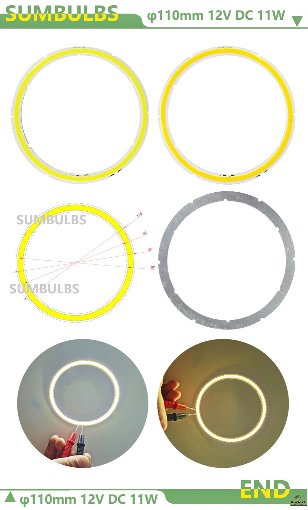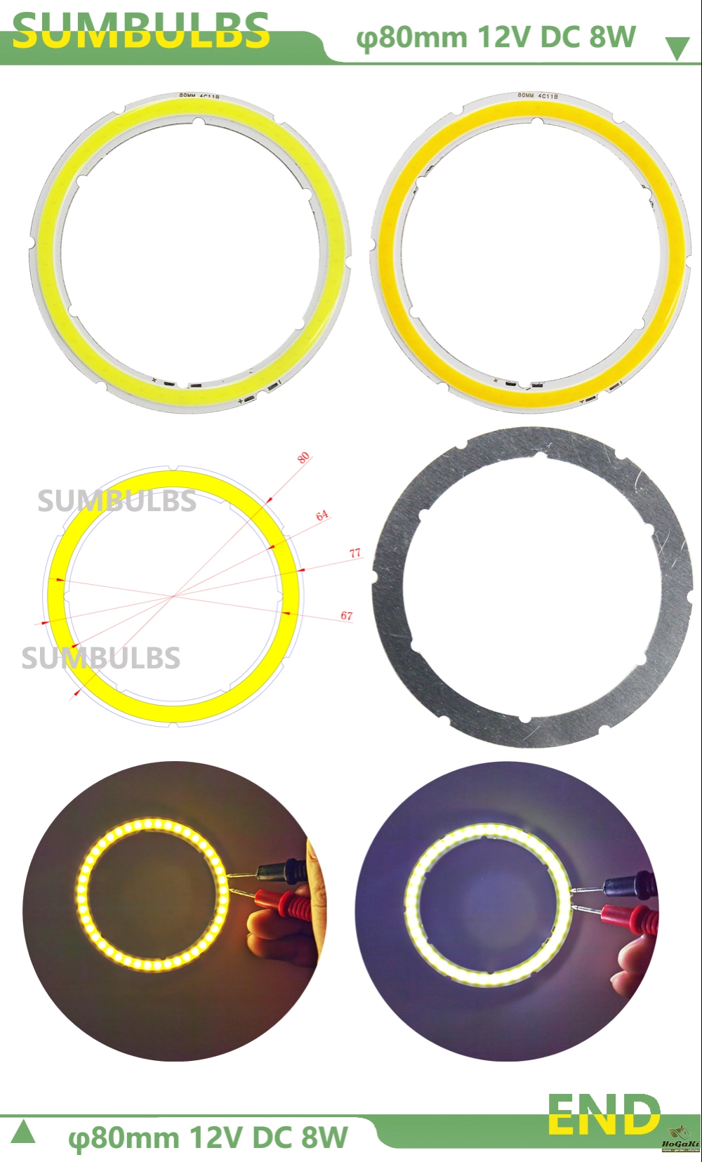 2W-12W Angel Eyes COB Light Source Annual Shape 12V DC 20mm-120mm Ring LED Chip Cold Warm White Light Source for DIY Car Bulb