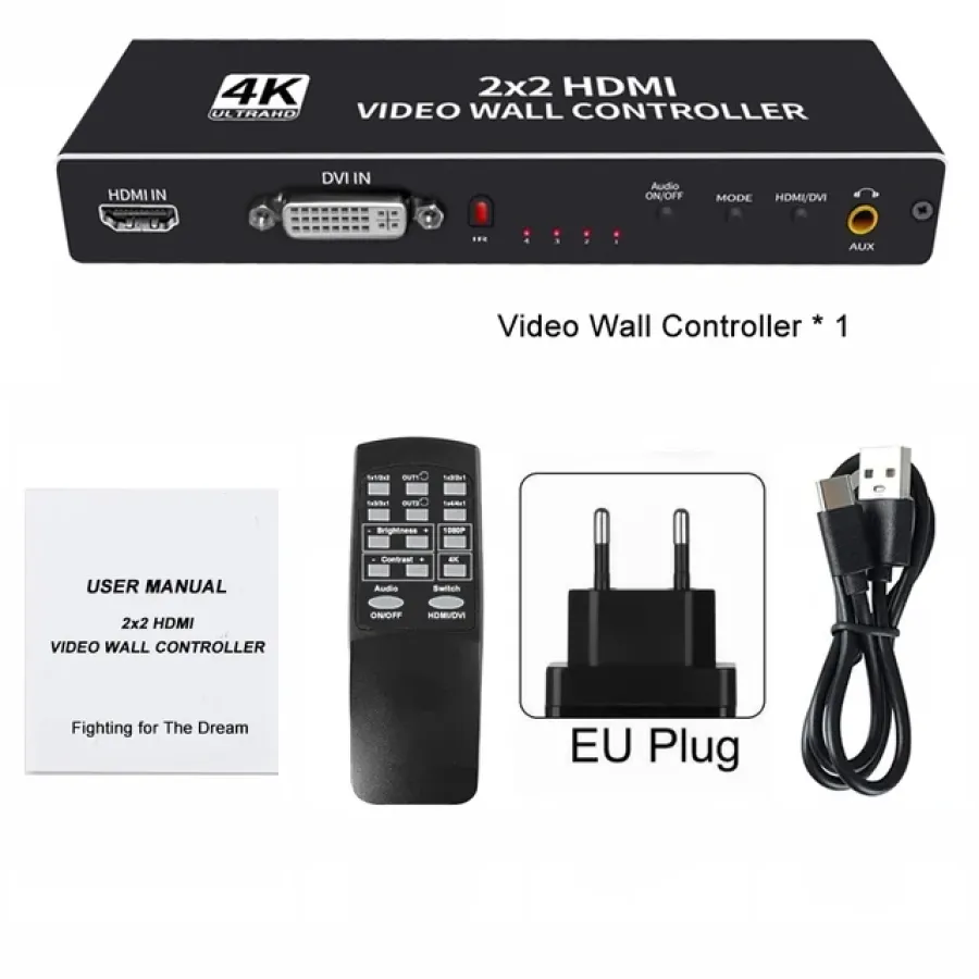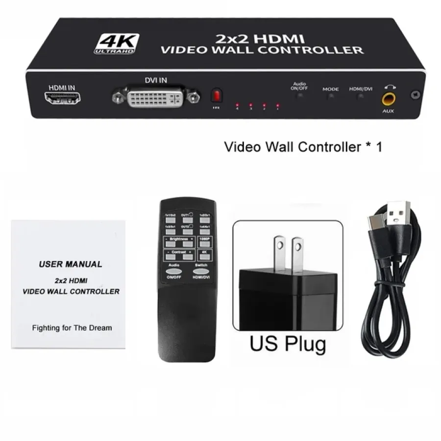 (1) choice 2x2 4 screen Video Wall Controller Processor  Support 8  Display Modes 1x1 1x2 1x3 1x4 2x1 2x2 3x1 4x1