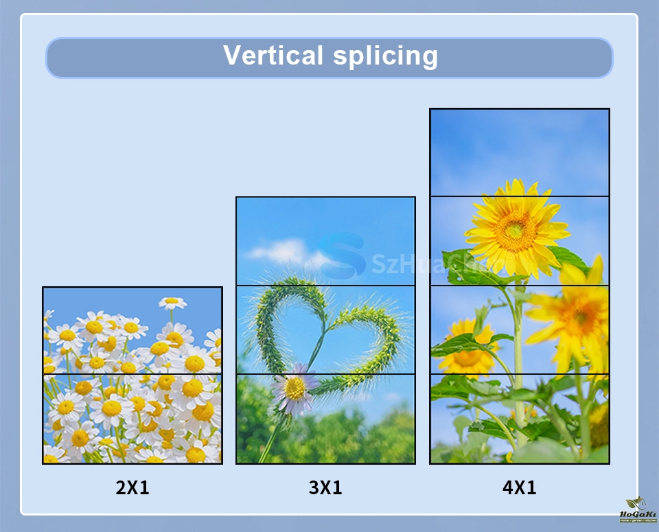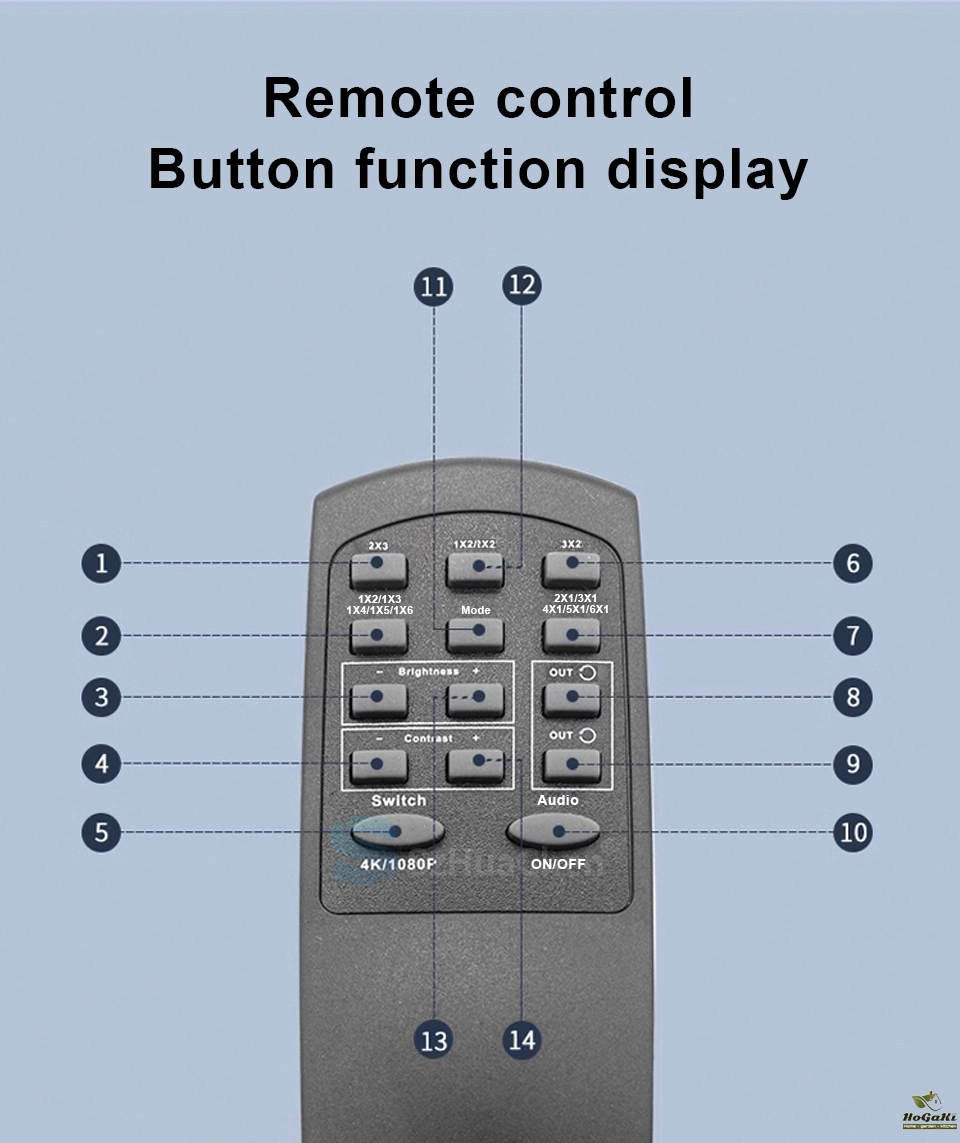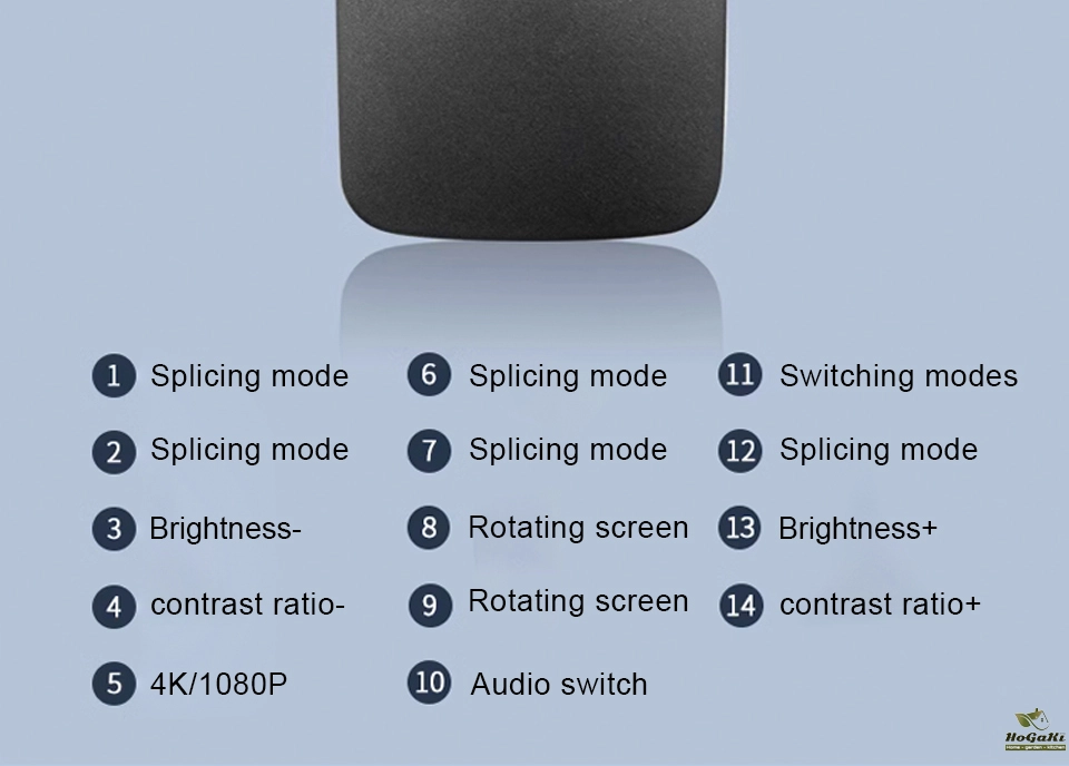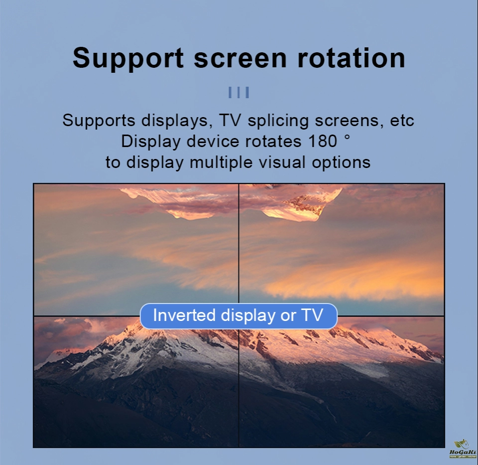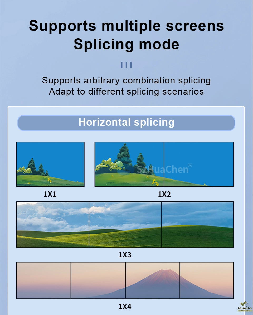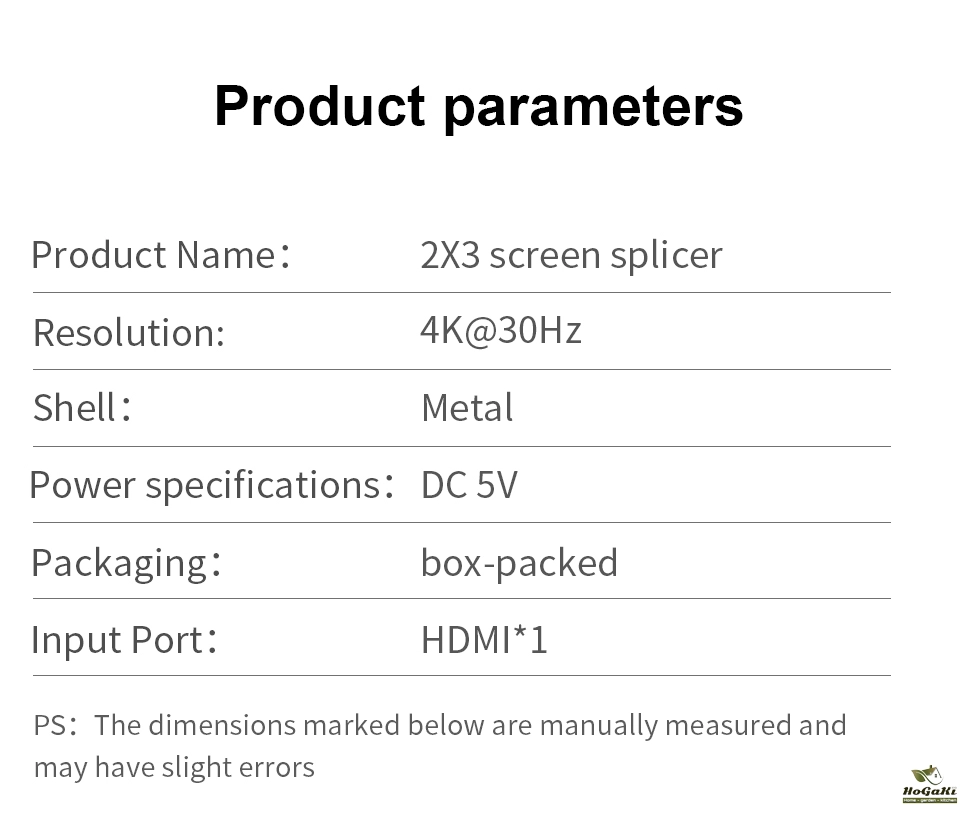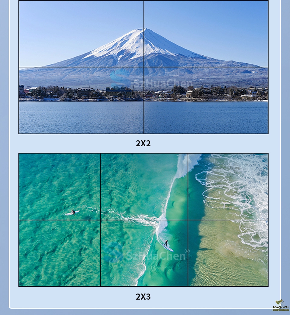 The 4K 2X3 video wall controller, support 1-way HDMI input and 6 HDMl output, the mainfunction is to divide a complete HDMI HD imagesingal into 6 blocks and assign to 6 video display unit(such as rear projection unit, LCD TV, etc.). Completewith 6 HDMI high-definition video display units toform a large dynamic image screen.