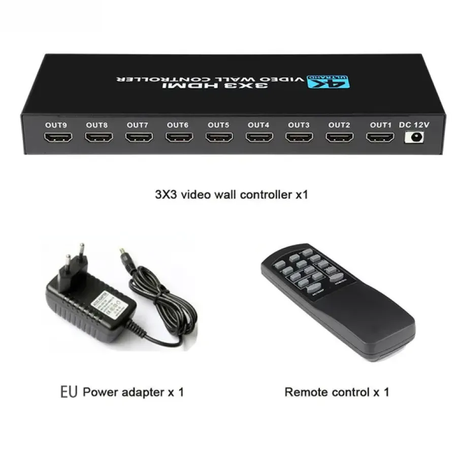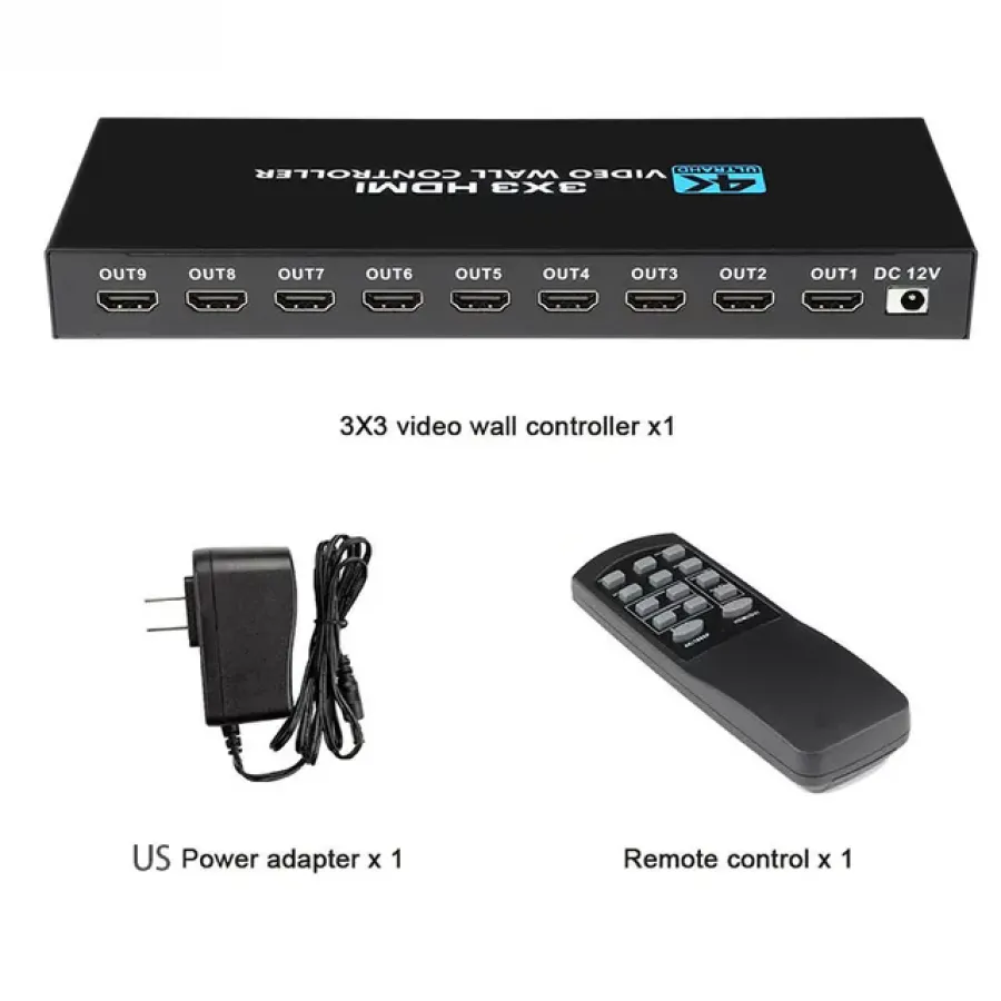 (3)choice 3x3 9 screen Video Wall Controller Processor Support 13 Display Modes 1x1,1x2, 1x3, 1x4, 2x1, 2x2, 2x3, 2x4, 3x1, 3x2, 3x3, 4x1, 4x2.