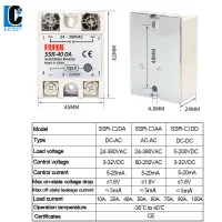 LCTC 1pcs Solid State Relay Single Phase Non-contact SSR DC To DC AC To AC DC To AC 24-380VAC 10A 25A 40A 50A 60A 80A 100A