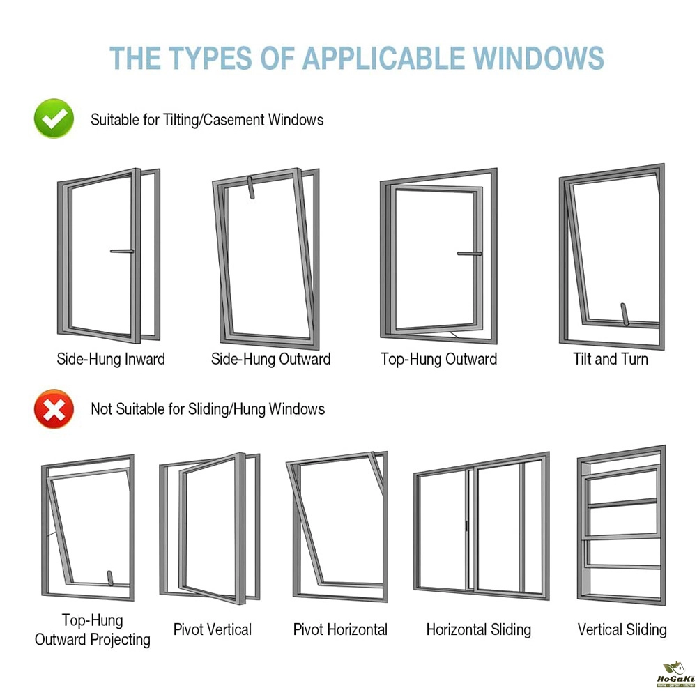 Window type: top-hung skylight, push-out casement window, inward casement window