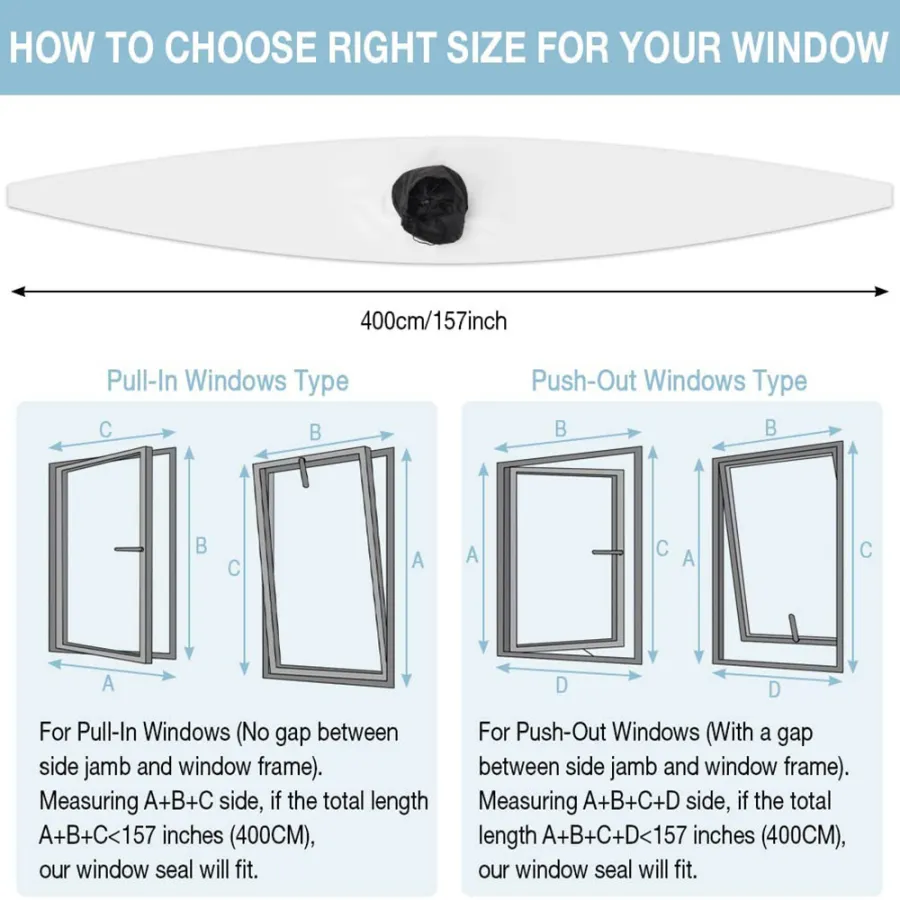 4.Easy to install: No drilling required. Our window sealing kits are available for all your needs! Simply attach the tape to the inside of the window frame and to the window. Attach the window seal to the hook and tape.