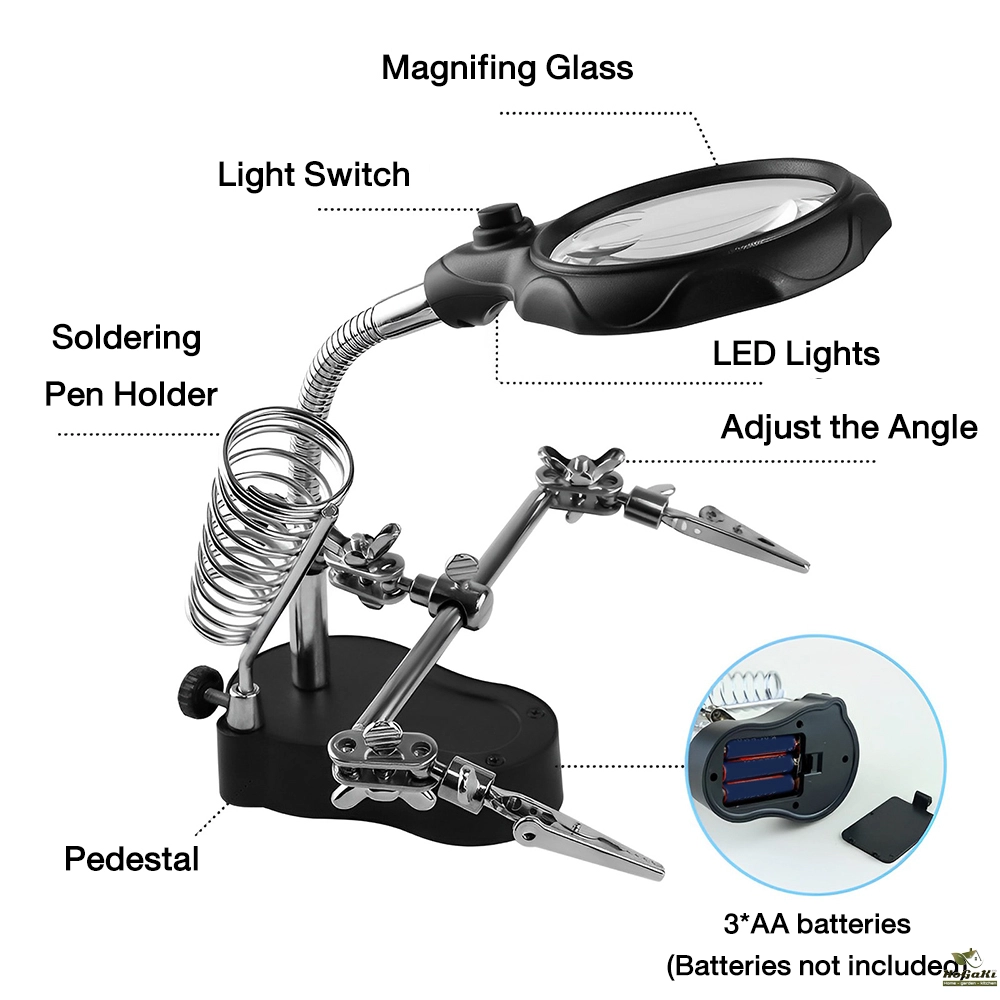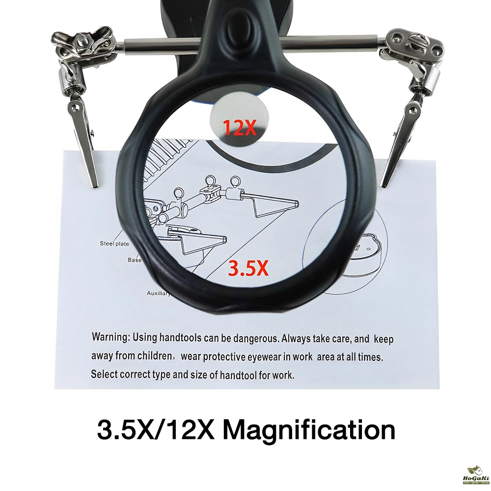 Two-in-one lens design: The welding magnifying glass has two magnifying devices with different diameters, which produce 3.5X and 12X magnification effects respectively. You can use different projects according to different needs, which greatly provides work efficiency;