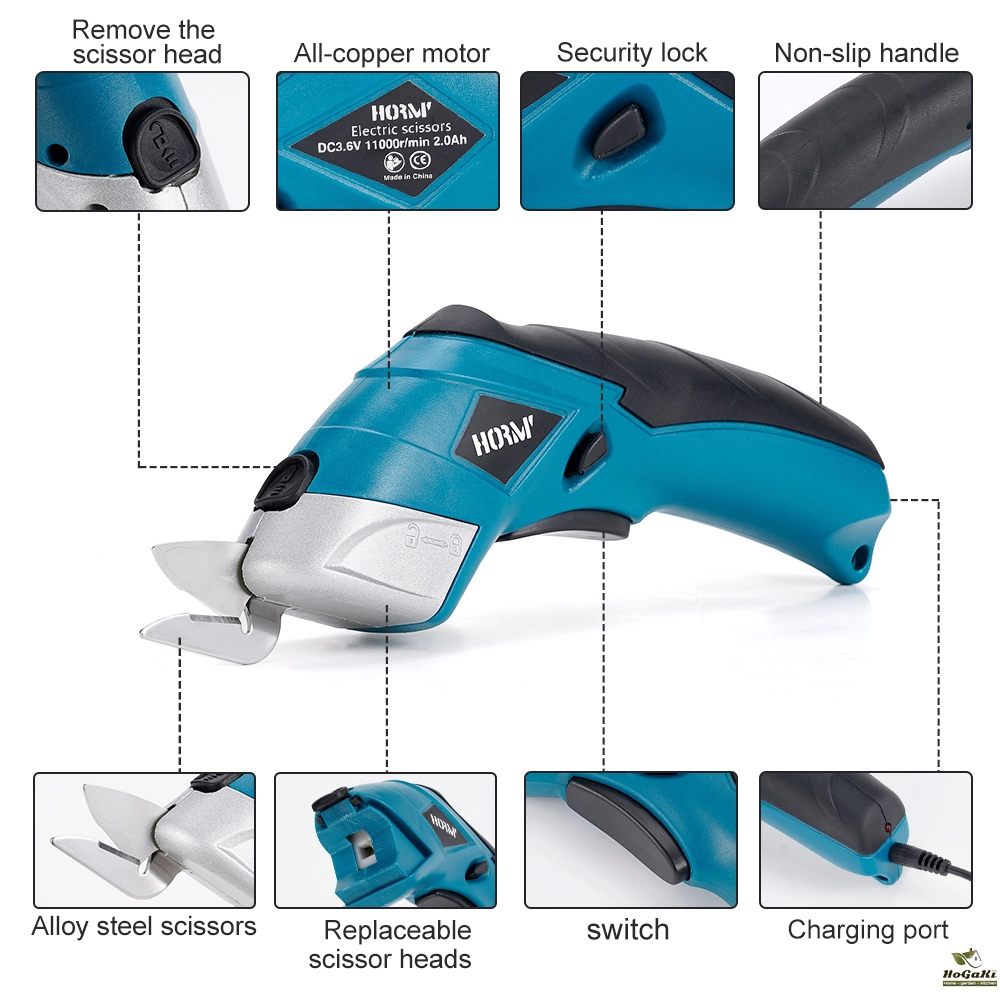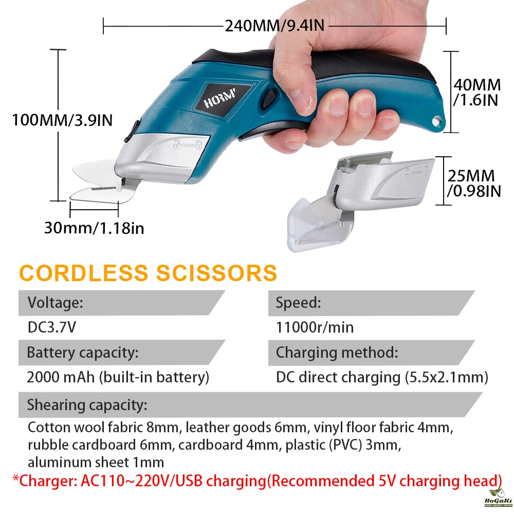 Electric Scissors Cloth Cutting Machine Lithium Charging PVC Leather Sewing Tailor Scissor Tungsten Steel Blade Doubl Blade Tool