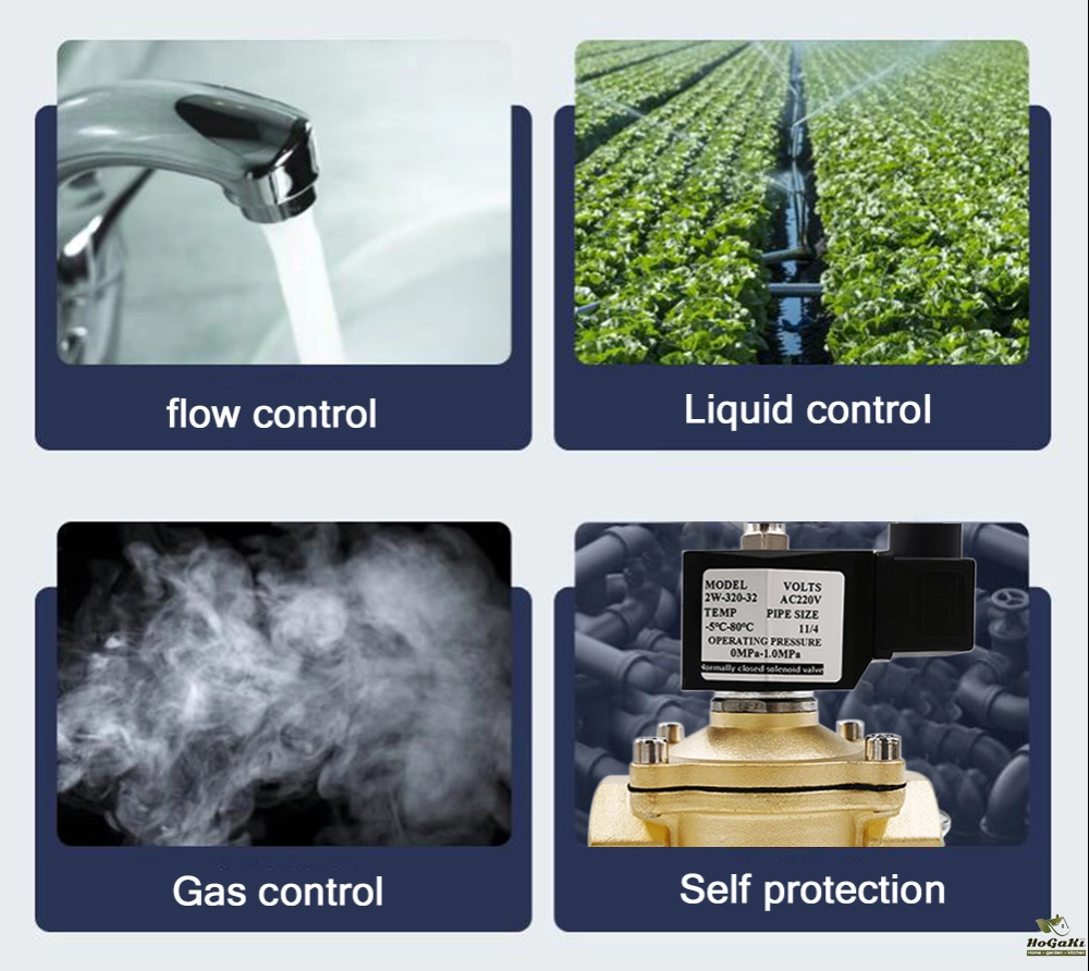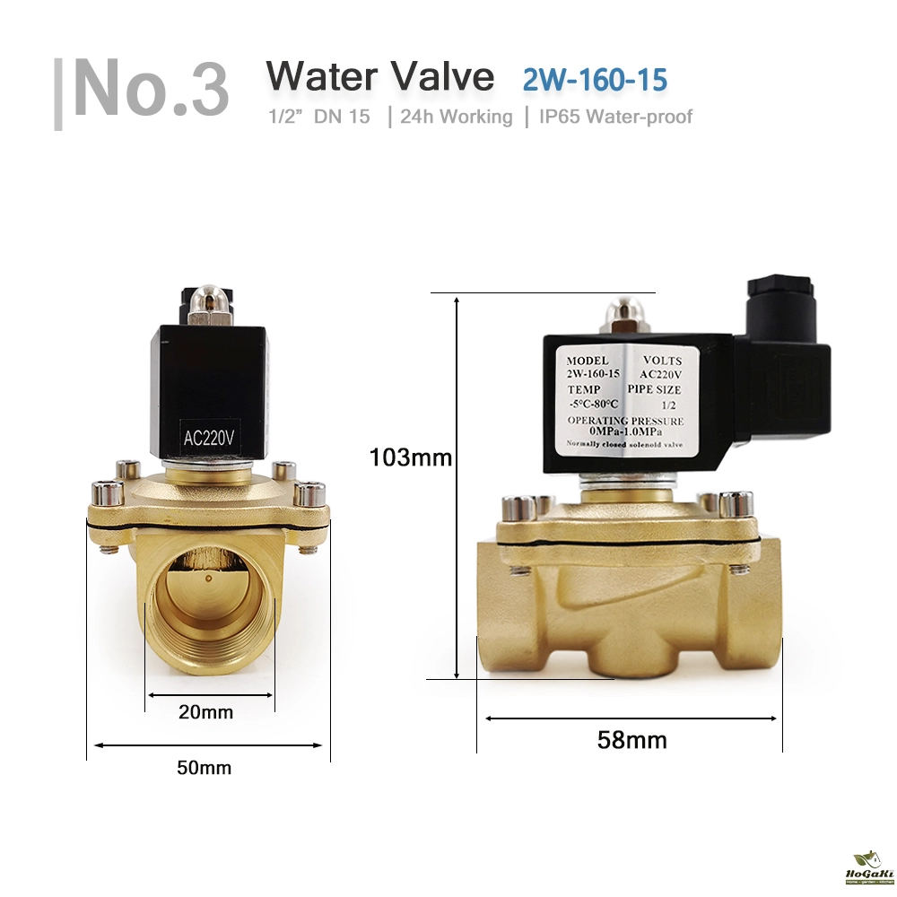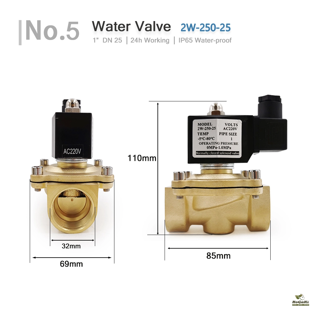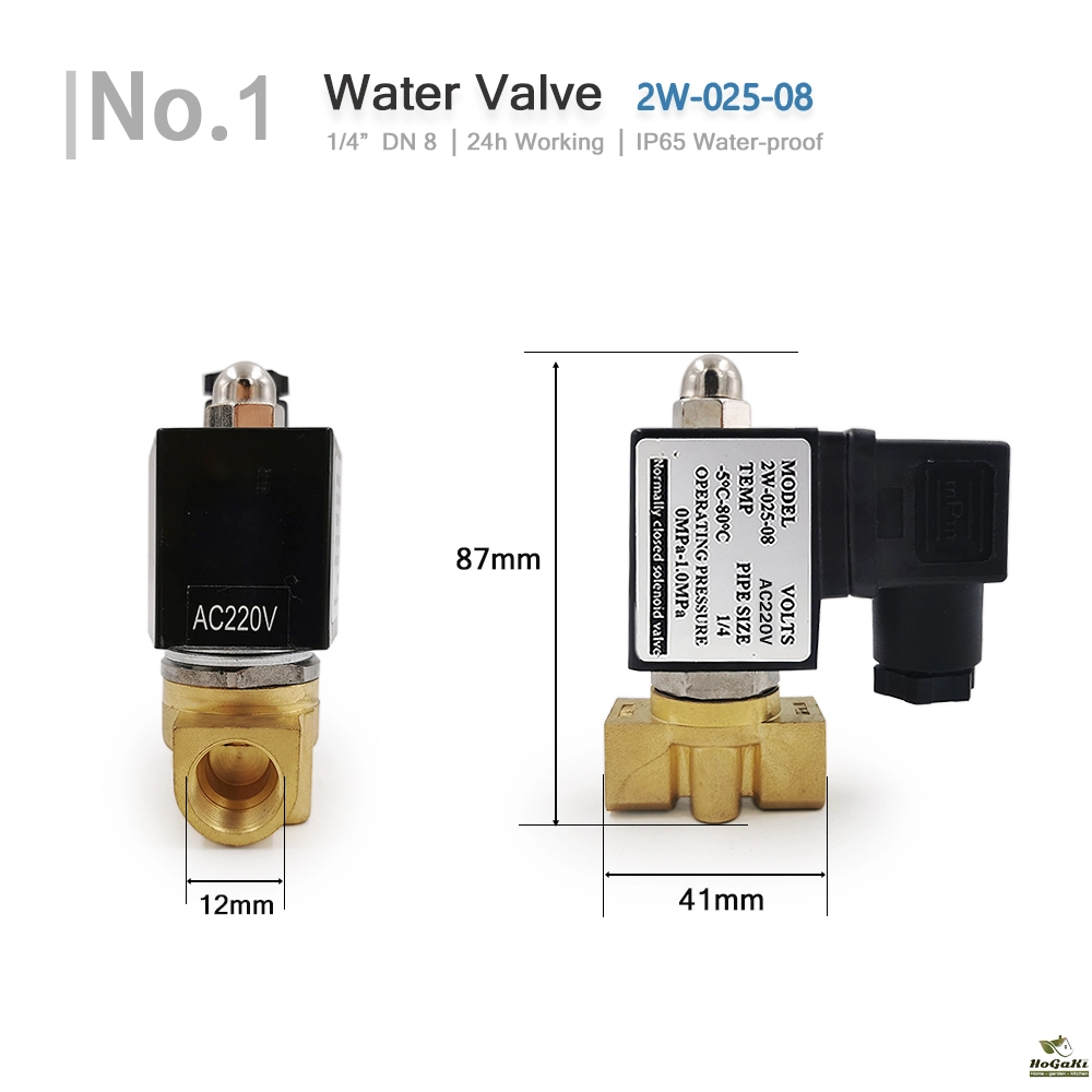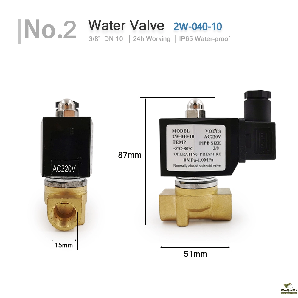- Two-position, one-way, normal close switch, magnetic solenoid water valve.