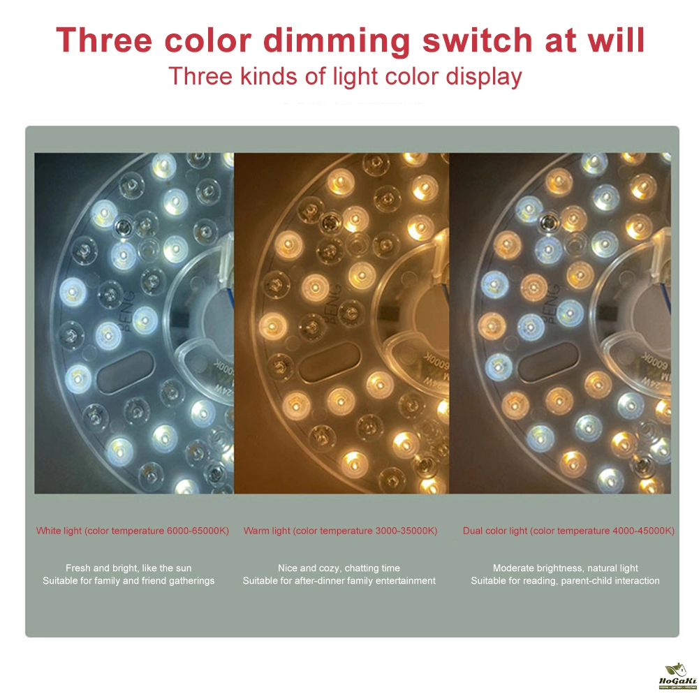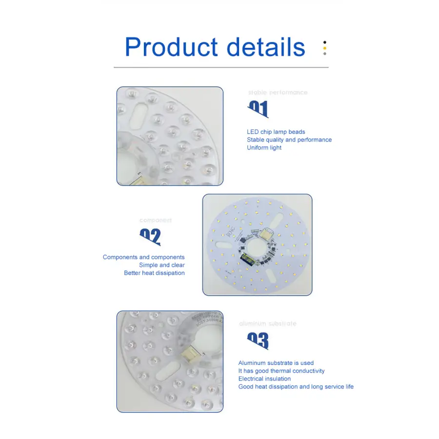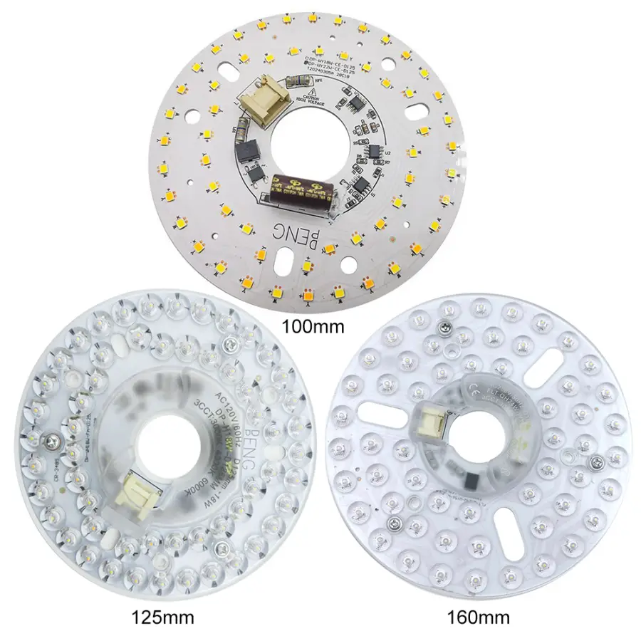 1. Advanced LED Ceiling Fan Light Kit: Upgrade your lighting with our ceiling fan light retrofit kit. Designed for residential and commercial spaces, the round PCB panel fits most integrated LED fan kits and bulb-less chandeliers, offering superior illumination and efficient heat dissipation. Specification: Origin: Mainland China Number Of Leds: 56 Wattage: 15w; 18w; 24w; Diameter: 100mm; 125mm; 160mm; Light Color: Three Colors (White Light/Warm Light/Neutral Light) Voltage: 110v; 220v; Used For: Fan Lights, Ceiling Lights