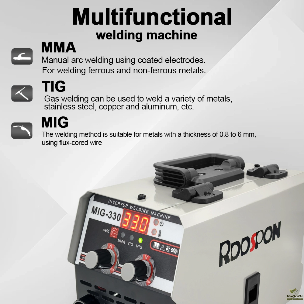The panel of 3 in1 MIG welder is very simple, which make it much easier to operate. The MIG330 welder has adjustable power setting, you can adjust it to suit your application. Its arc-line is smooth that bring you a decent job.