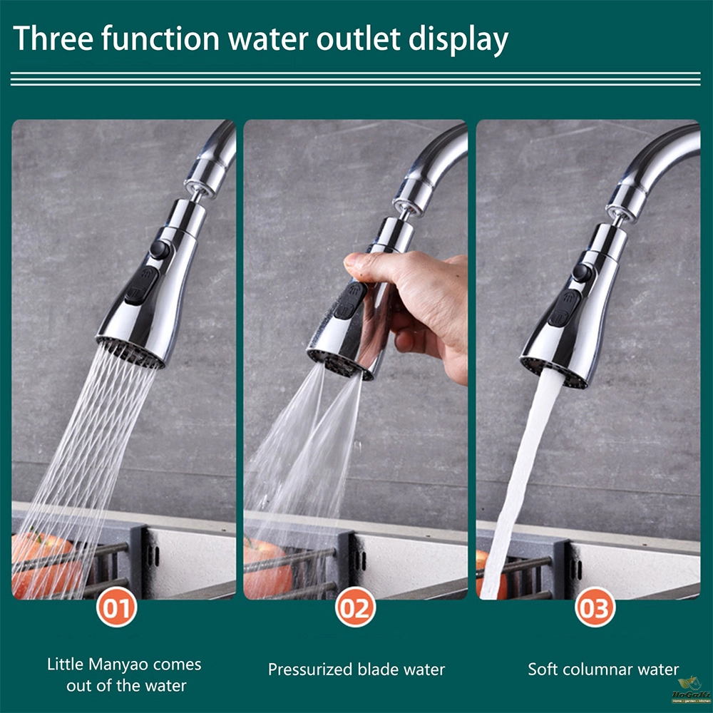 3 FUNCTIONS: Kitchen faucet extender provides 3 functions; gentle water flow for daily use; medium pressure water flow for cleaning sinks; high pressure water flow is suitable for washing dishes, or rinsing stains.