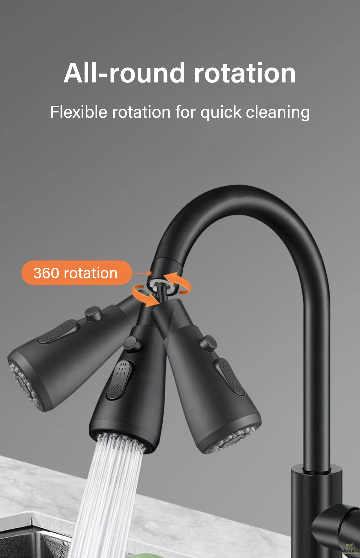 DOUBLE ROTATING SHAFT: This swivel faucet attachment is designed with two independent axes of rotation, allowing it to rotate 720°, allowing you to easily clean any corner of the sink.