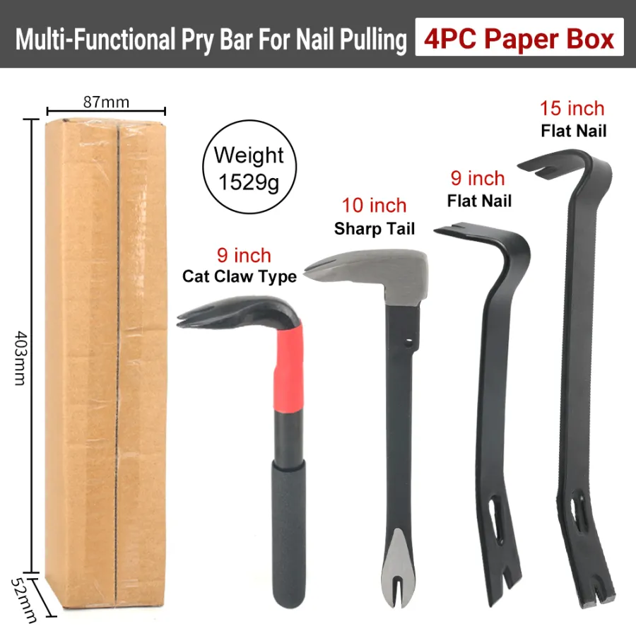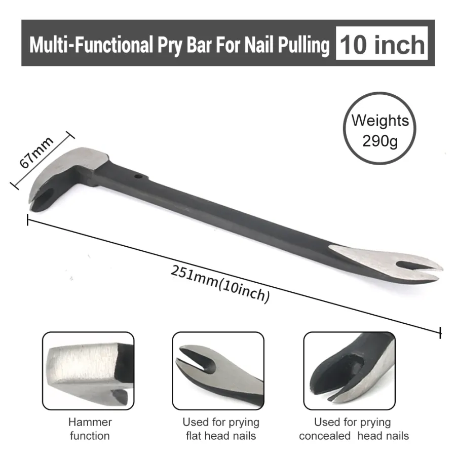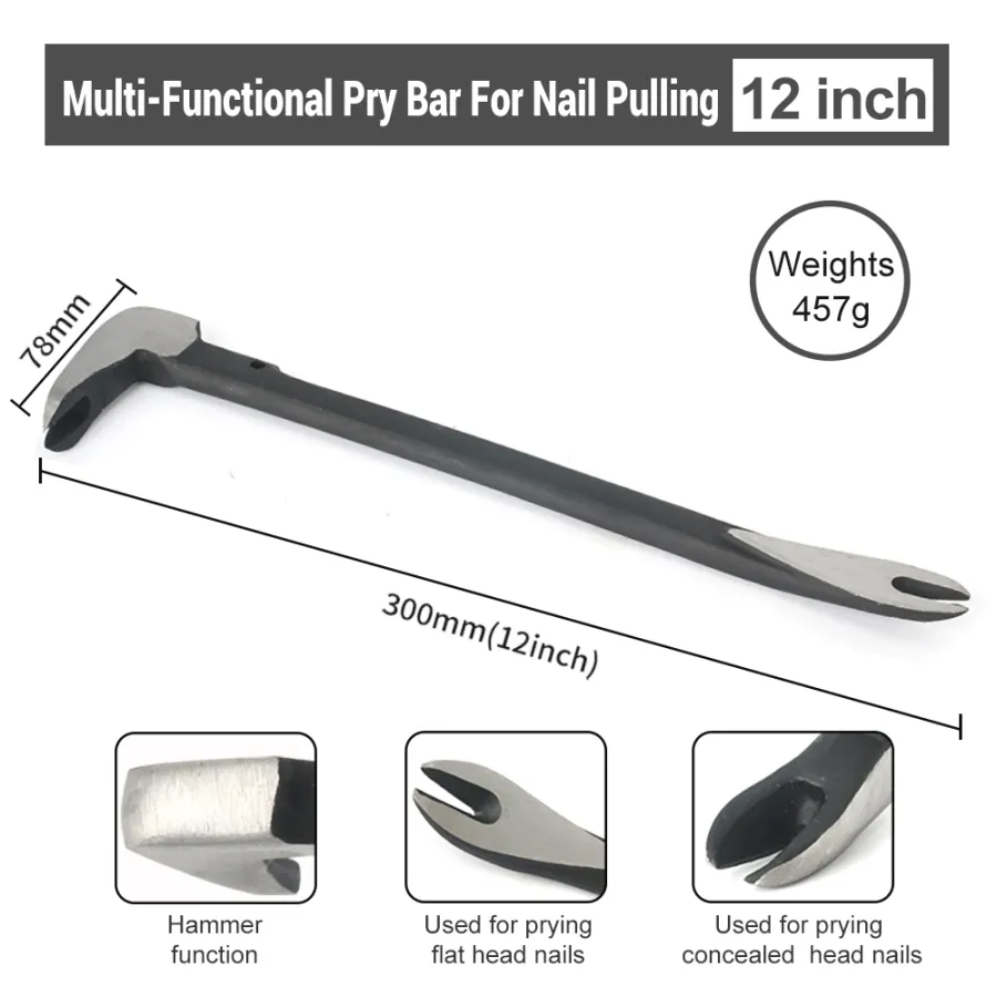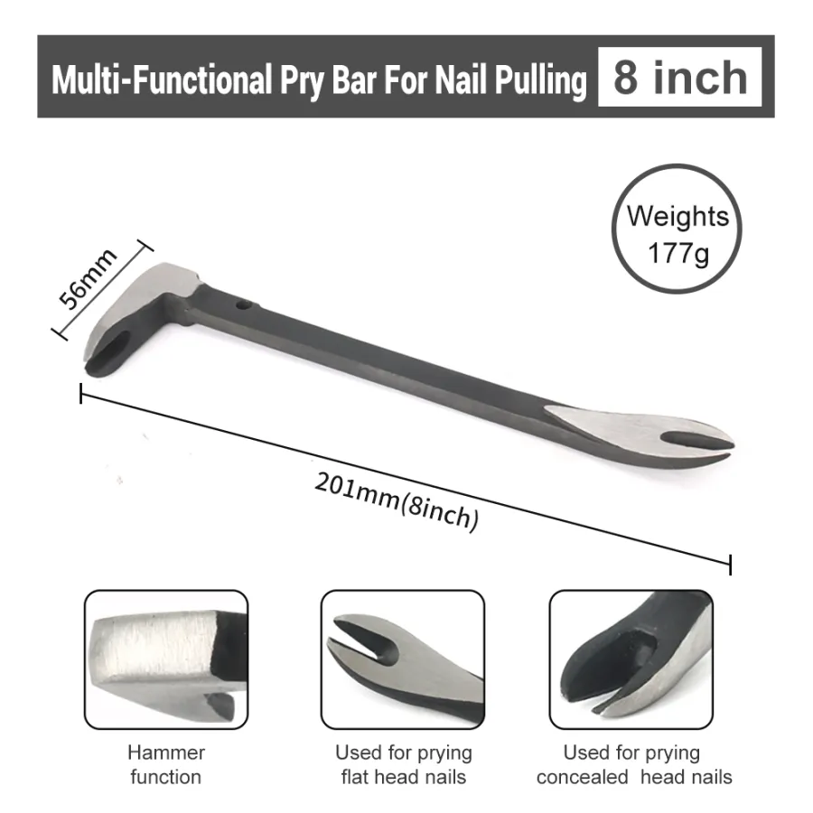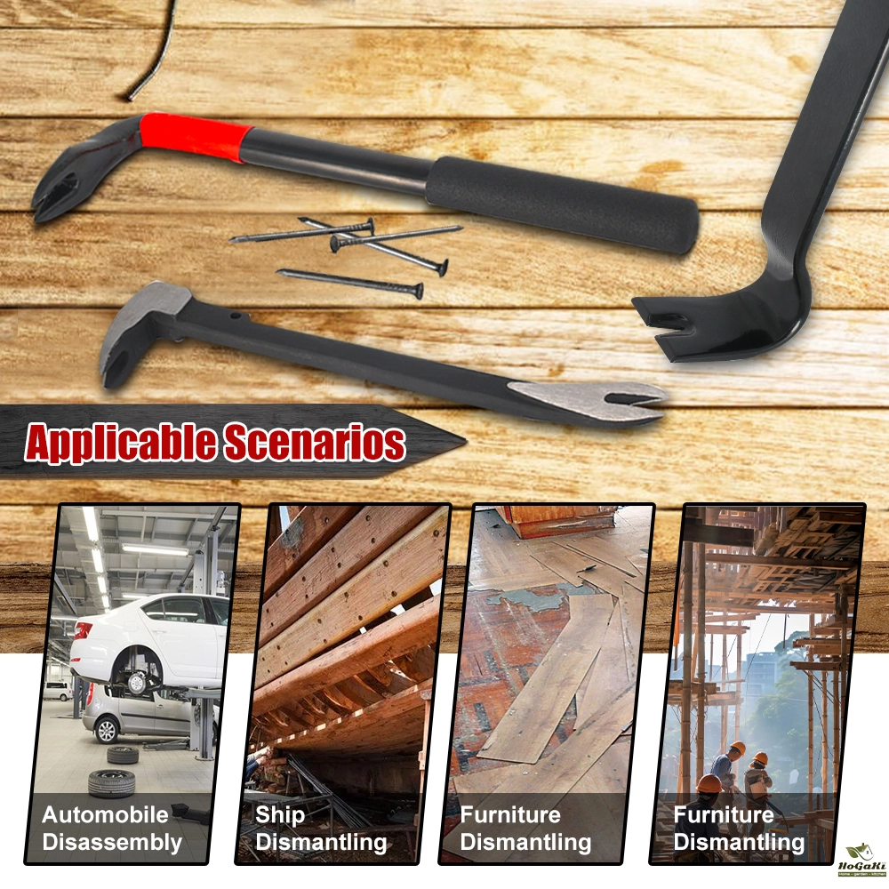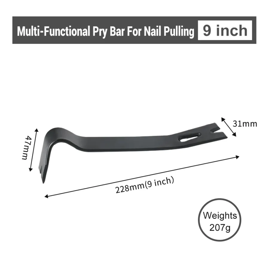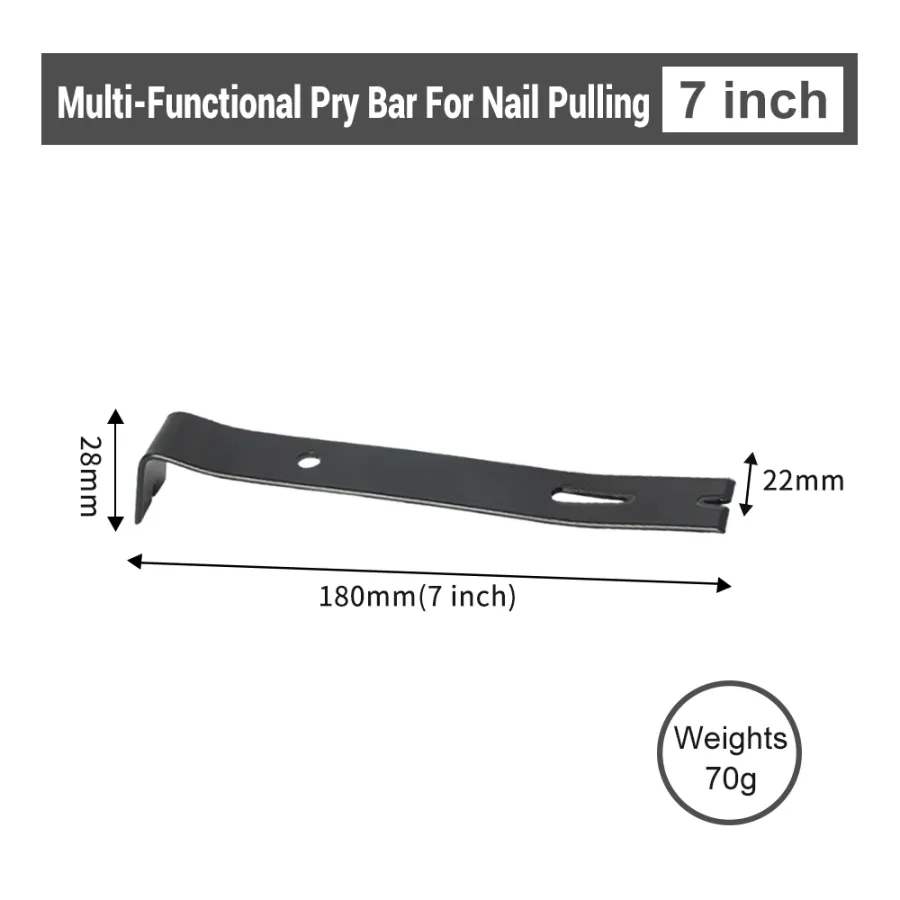 This versatile 7-inch Nail Puller and Pry Bar Set is your go-to tool for heavy-duty disassembly on construction sites, as well as furniture, automotive, and mechanical tasks. Each tool in the set is engineered for both nail removal and prying, offering robust performance in any environment. A standout feature is the integrated striking surface, allowing you to easily drive the tool under nails or into tight spaces, making your work faster and more efficient. Durable and multifunctional, this set is essential for professionals and DIY enthusiasts alike.