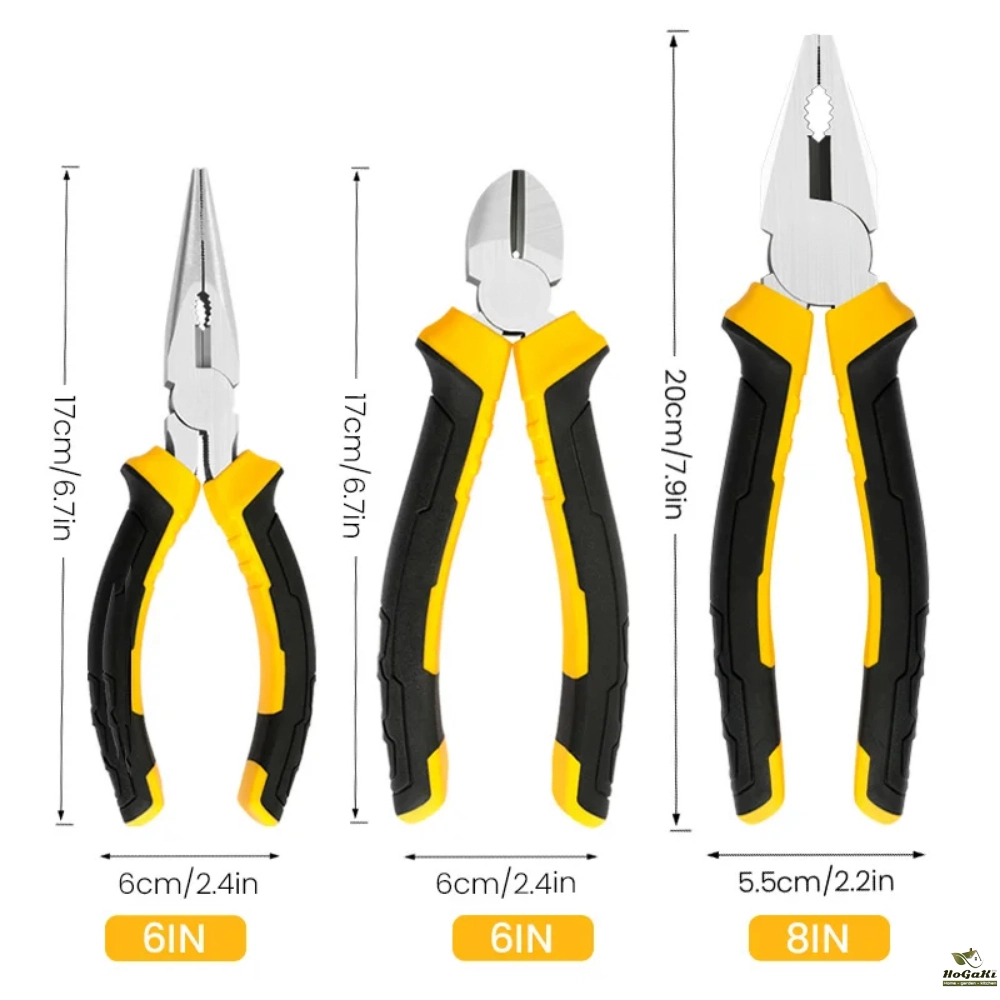 Versatile Pliers Set :The plier set includes 8-inch wire pliers, 6-inch pointed nose pliers, and diagonal pliers, providing a variety of tools for your household needs.