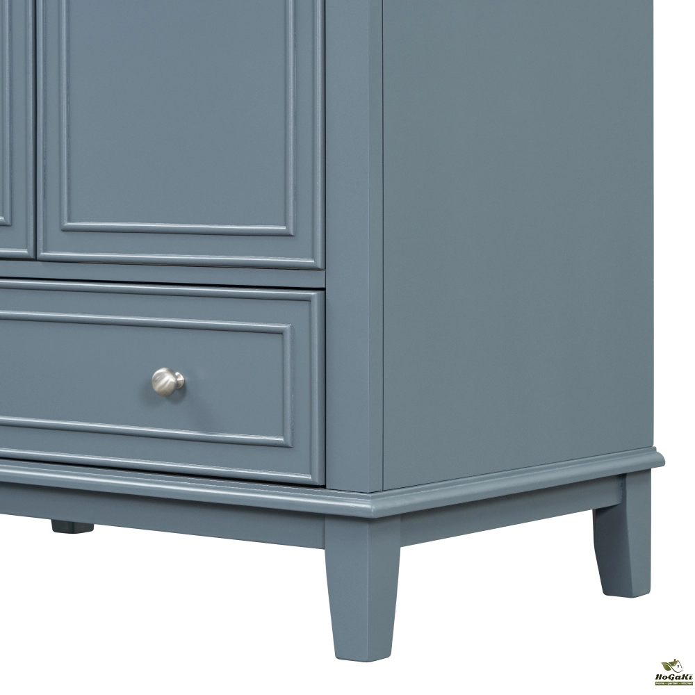 24" Modern Bathroom Vanity Sink Combo Black Stand Cabinet with Blue Boat Tempered Glass Vessel Sink & Water Save Faucet