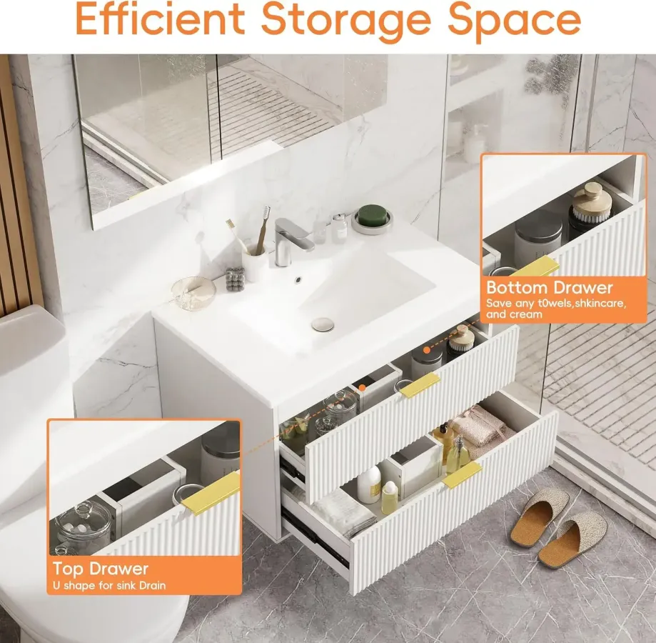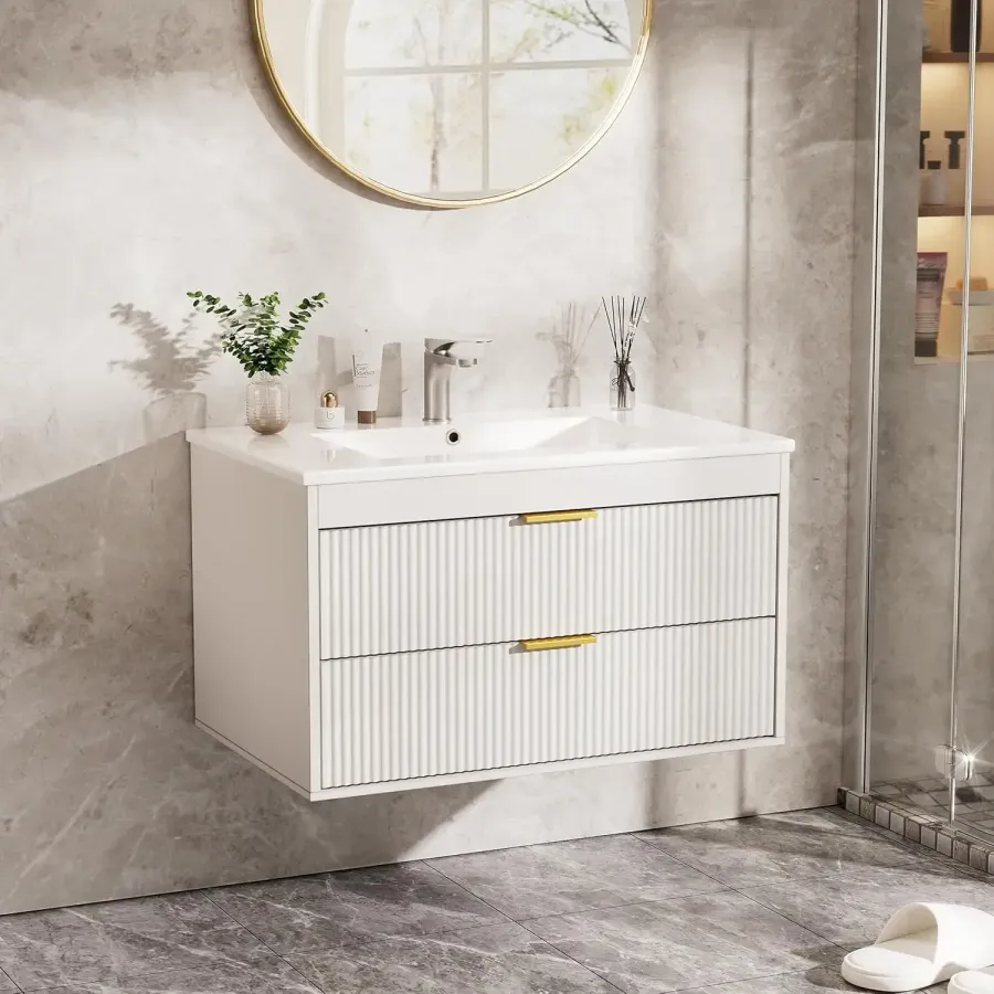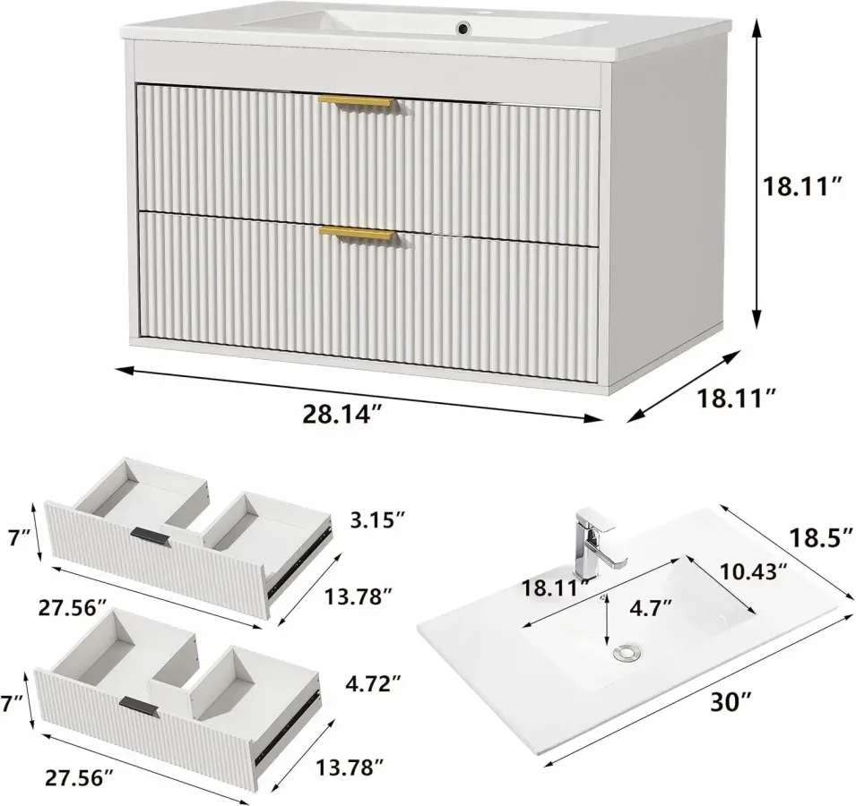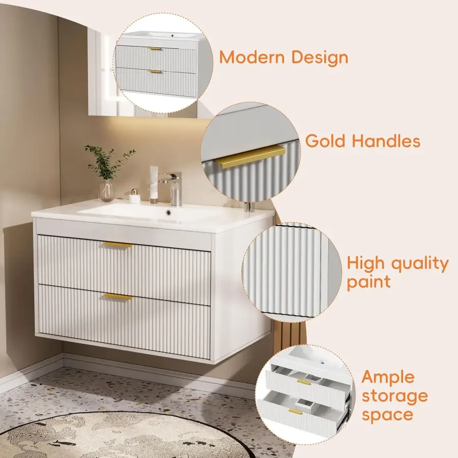 30" Farmhouse Bathroom Vanity with Sink,Modern Bathroom Cabinet w/3 Drawers , Floor Standing Bathroom Vanity , Light Brown